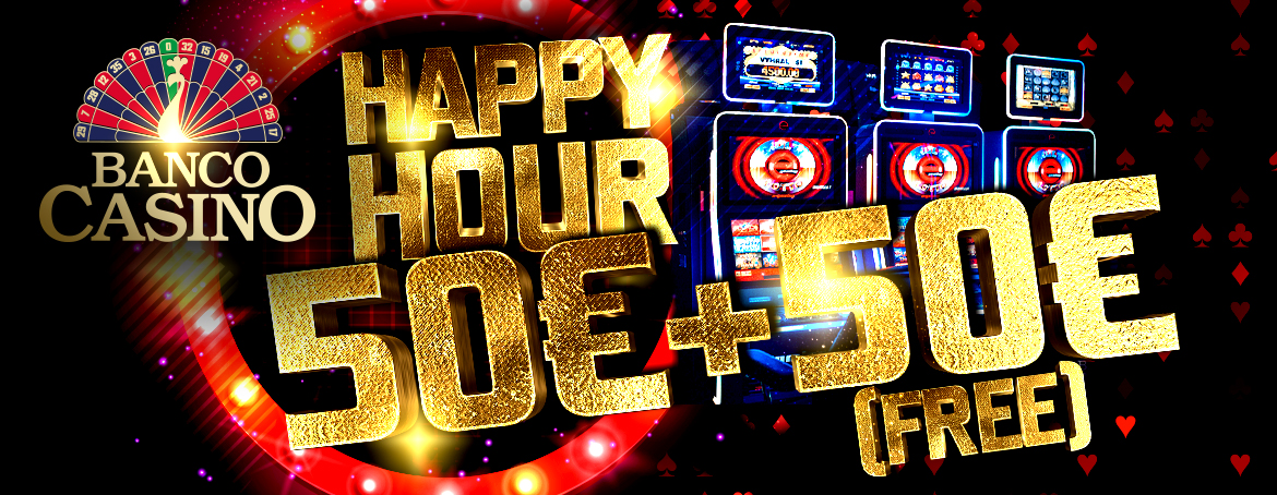 You can also use the happy hour on the slot machines, where you can play from 8:00 to 16:00 and with a deposit of 50€ you will receive EXTRA 50€ for free! Get more information at Banco Casino!