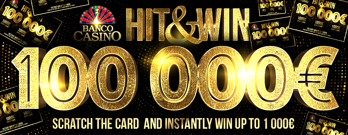 Banco Casino is giving away thousands of Euros, not only in poker, but also in the live games and slot machines section. Only now it has launched HIT & WIN, where casino will give away 100,000€ in instant winnings. Just meet the easy game condition and you can get a scratch card with prizes up to 1,000€. You can find out more information at the casino!