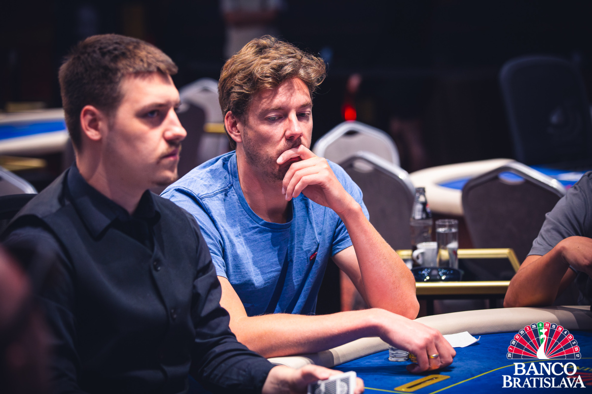 On the turn Qc 8c Ad As, the pot was around 1,000,000 and Alexey Mishuk bet 525,000 from the big blind. Vincent Hazelhoff in the small blind tanked for several minutes, prompting the table to call the clock. Before the countdown began, Vincent folded his hand. Meanwhile, Peter Ješko and Leopold Kreczy have been eliminated from the tournament.