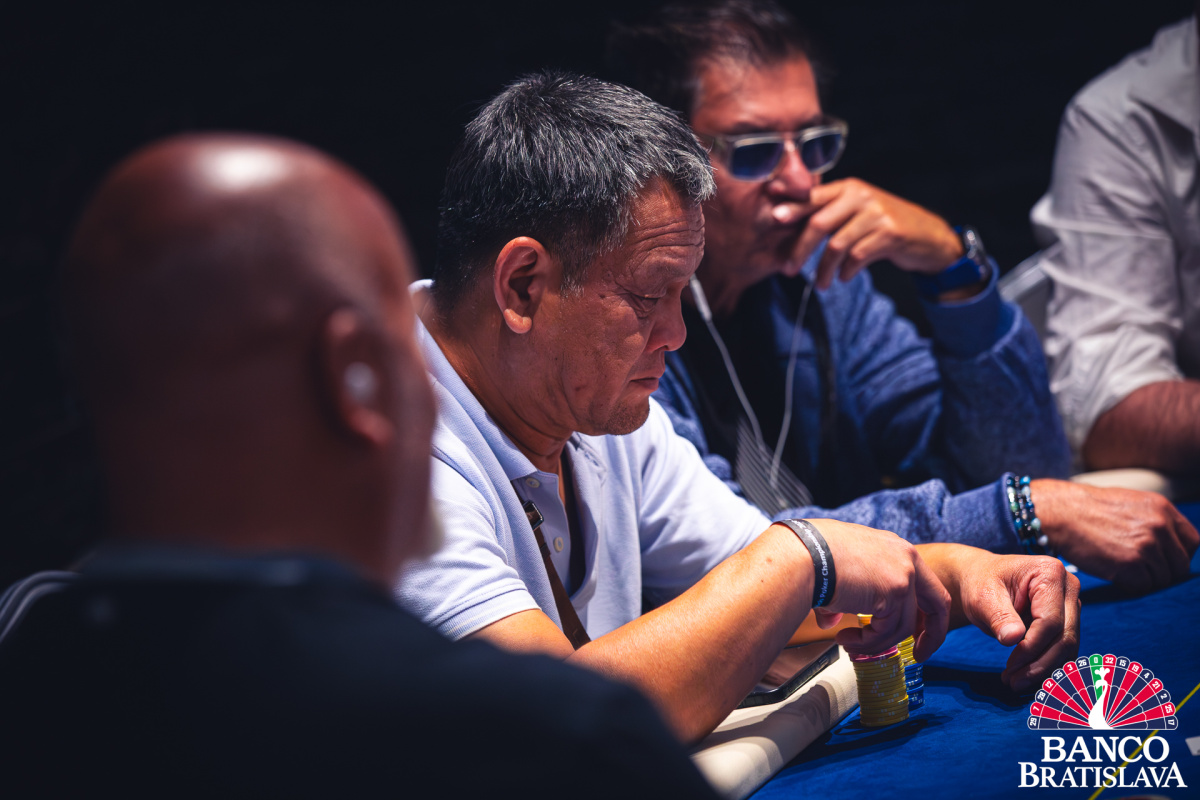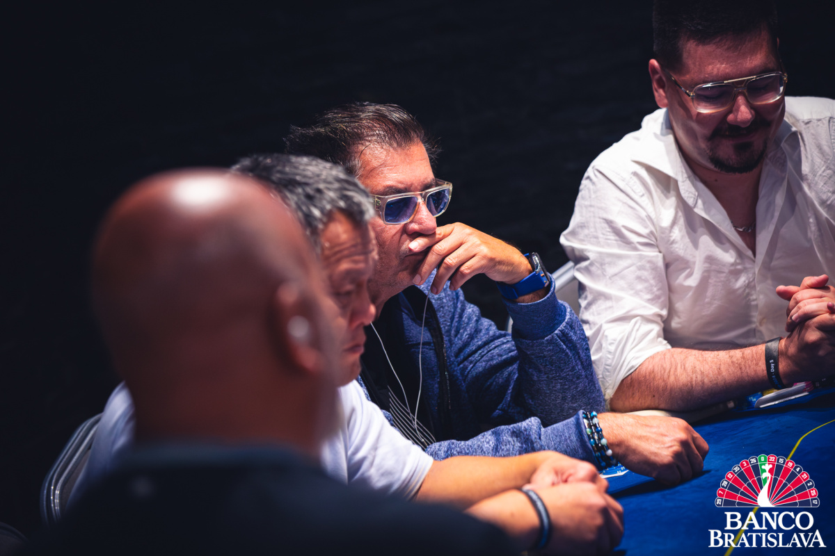 Matúš shoved his 10bb stack with Kx Qx, but Beata Gacek, seated behind him, found Ax Kx. The board ran out Jx Kx 9x 7x 2x, eliminating Matúš on the bubble. On the other hand, Beata likely becomes the chip leader of this flight with a stack of 1,169,000.