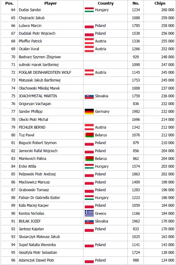 The Polish Poker Cup also had an accelerated 1F turbo flight on the agenda, giving poker enthusiasts a second chance to advance. The poker players did not miss the opportunity to play and speak in the Main Event standings and recorded a total of 376 entries. Another 38 poker players secured a seat in Day 2.
