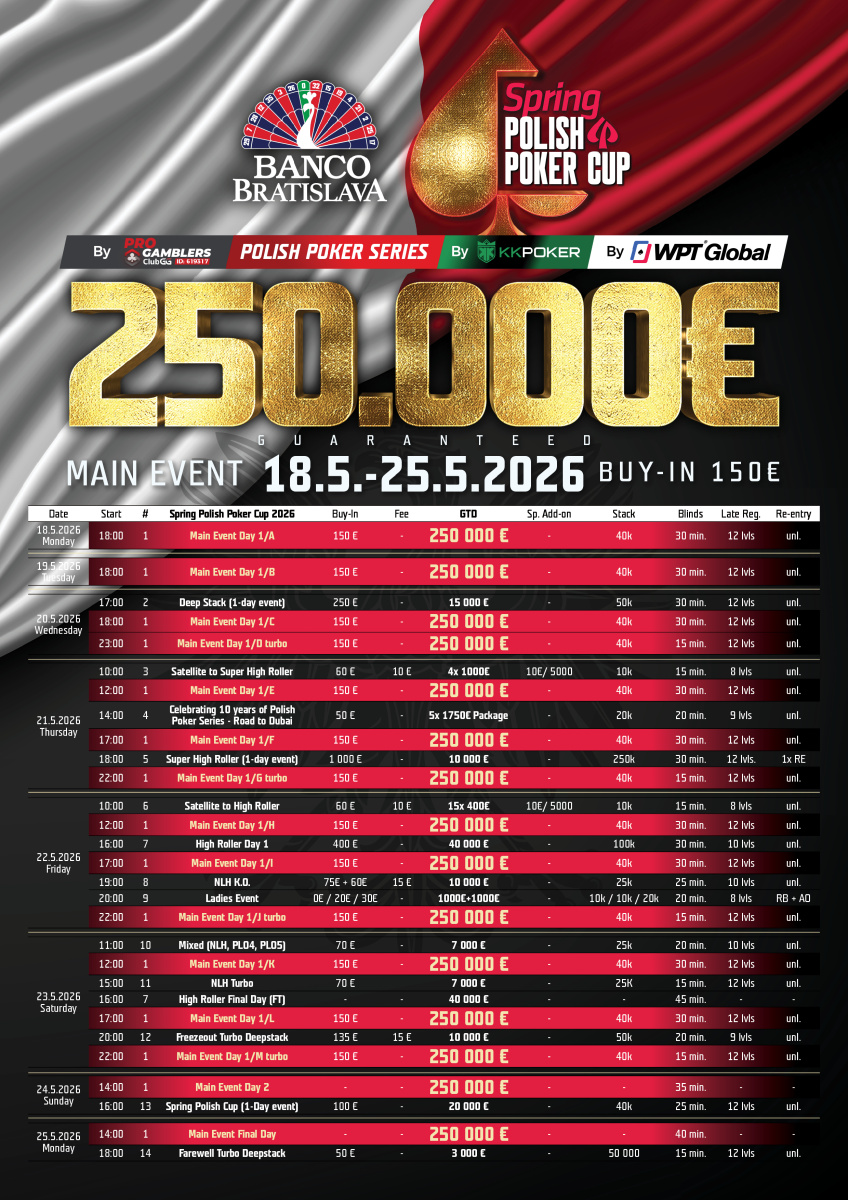 18. – 25. máj 2026 | Polish Poker Cup Spring Edition – Banco Bratislava