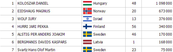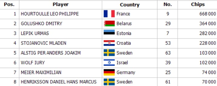 V rýchlom slede z turnaja vypadli Karkkainen, Heidelbacher, Schneider a Pruteanu. Od konca flightu 1A nás tak delia dve eliminácie a spájame sa na posledný stôl.