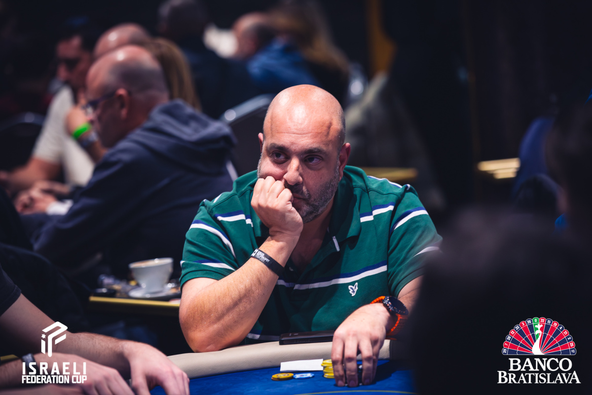 Moshe sa dostal do preflop all inu za svojich zostávajúcich 25,000 s Ax Kx proti Jx Jx maďarského súpera. Po blank boarde však Moshe musí zvážiť možnosť reentry.