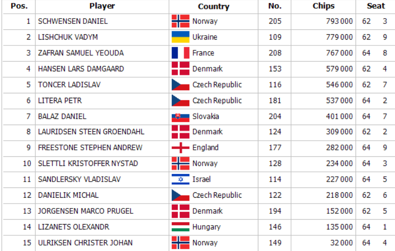 SOPC Main Event 250,000€ GTD zaznamenal vo flighte 1C celkom 122 entries a postupovalo 15 hráčov. Na čelo sa ako chipleader dnes postavil Daniel Schwensen so stackom 793,000. SOPC Main Event pokračuje dnes svojimi flightami 1E od 15:00 a 1F o 22:00. O 17:00 na Vás čaká SOPC Highroller s garanciou 25,000€ a buy inom 550€. Tešíme sa na Vás !
