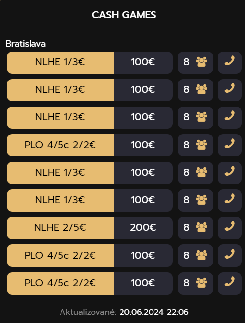 Príležitosť zabojovať o množstvo zahraničného kapitálu je aj na našich stoloch vyhradených pre Cash Games !