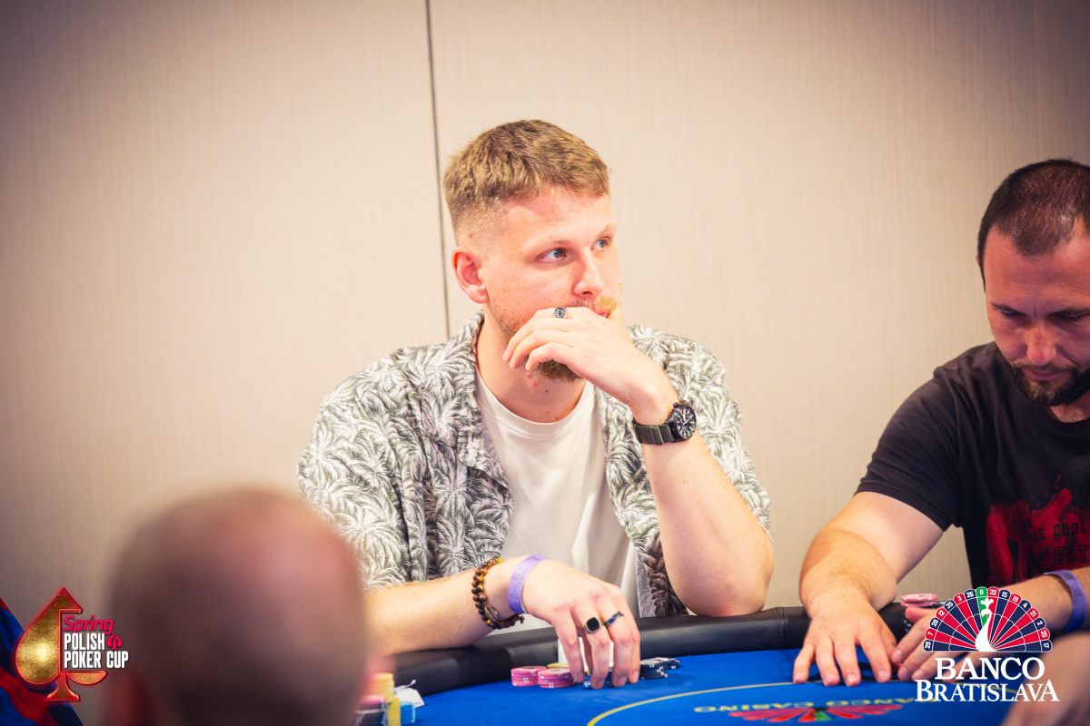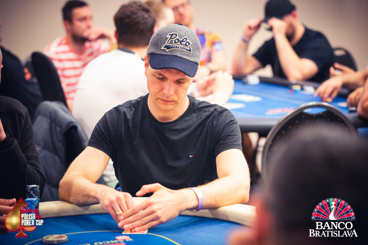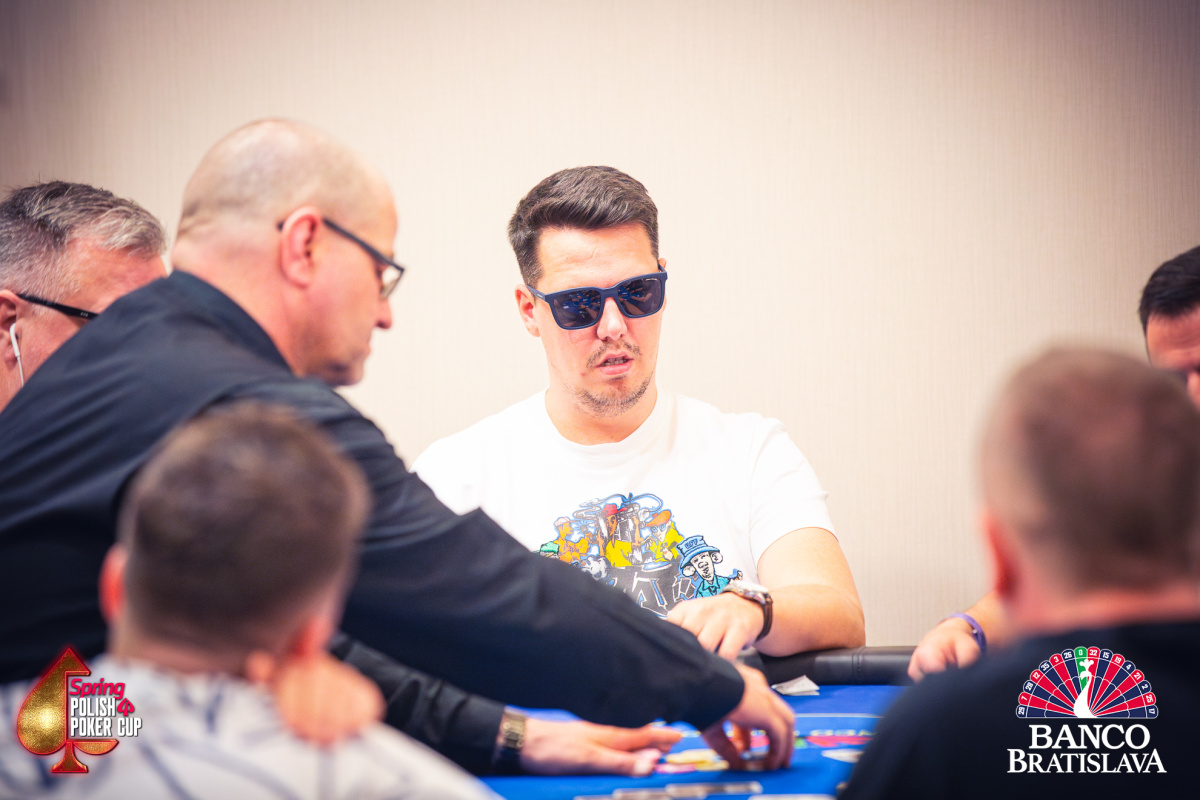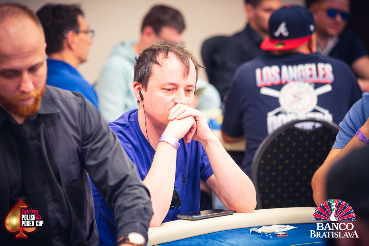 Kajetan otvoril z Hj na 20,000. Marcin Panylo dlhšie uvažoval na bigblinde, prerátaval stacky no nakoniec karty iba zahodil.