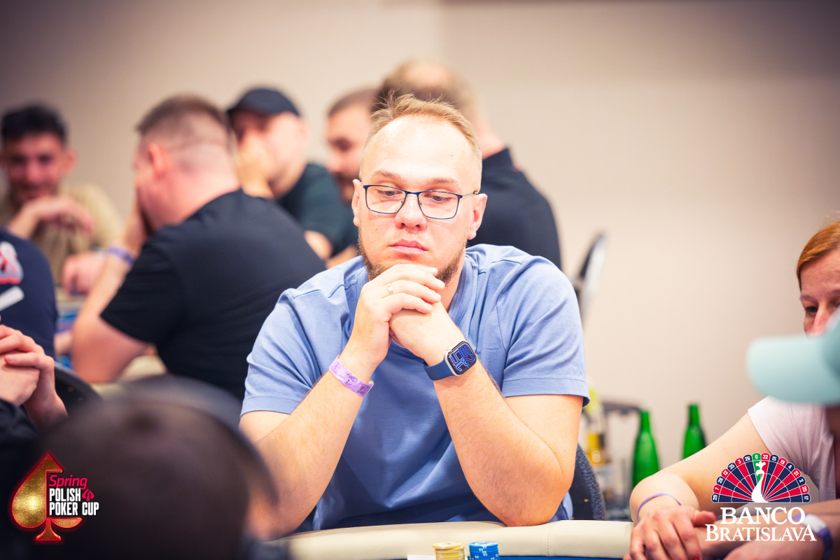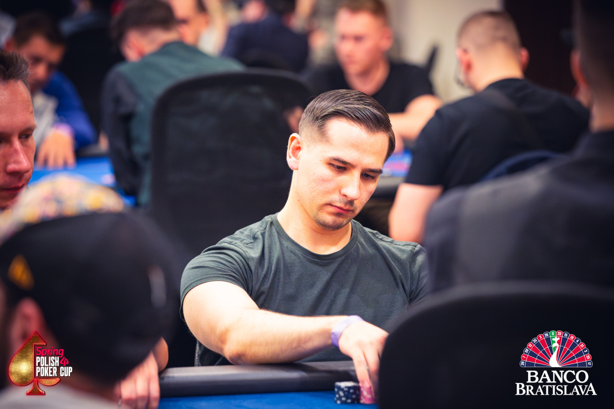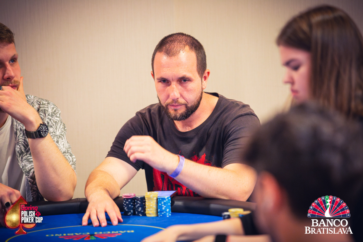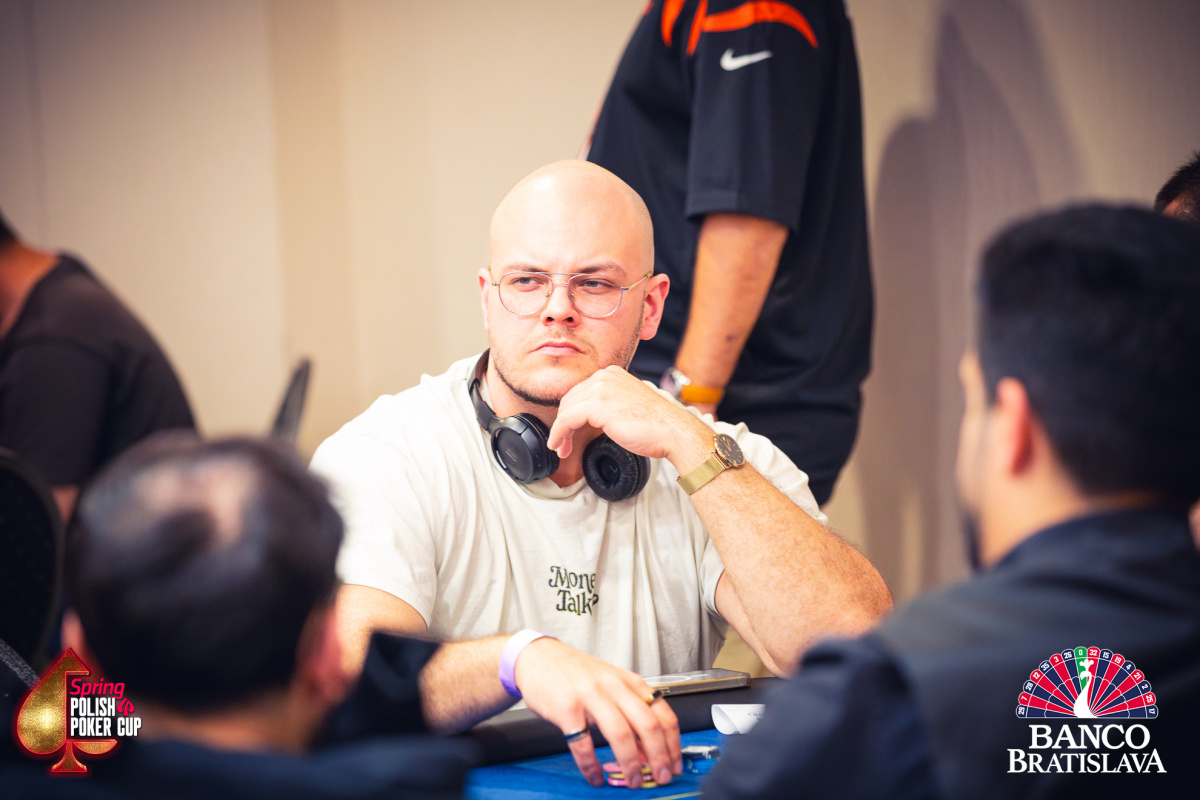 Kajetan otvoril z Hj na 20,000. Marcin Panylo dlhšie uvažoval na bigblinde, prerátaval stacky no nakoniec karty iba zahodil.