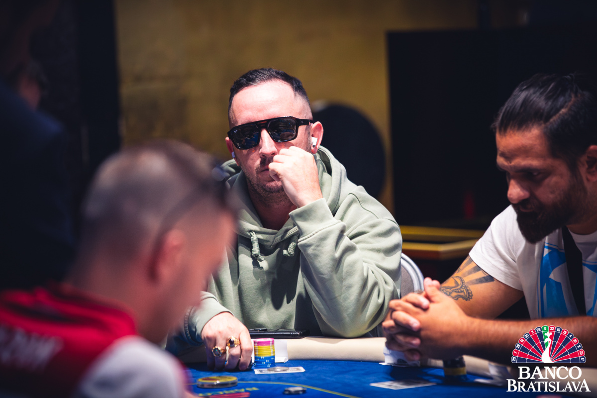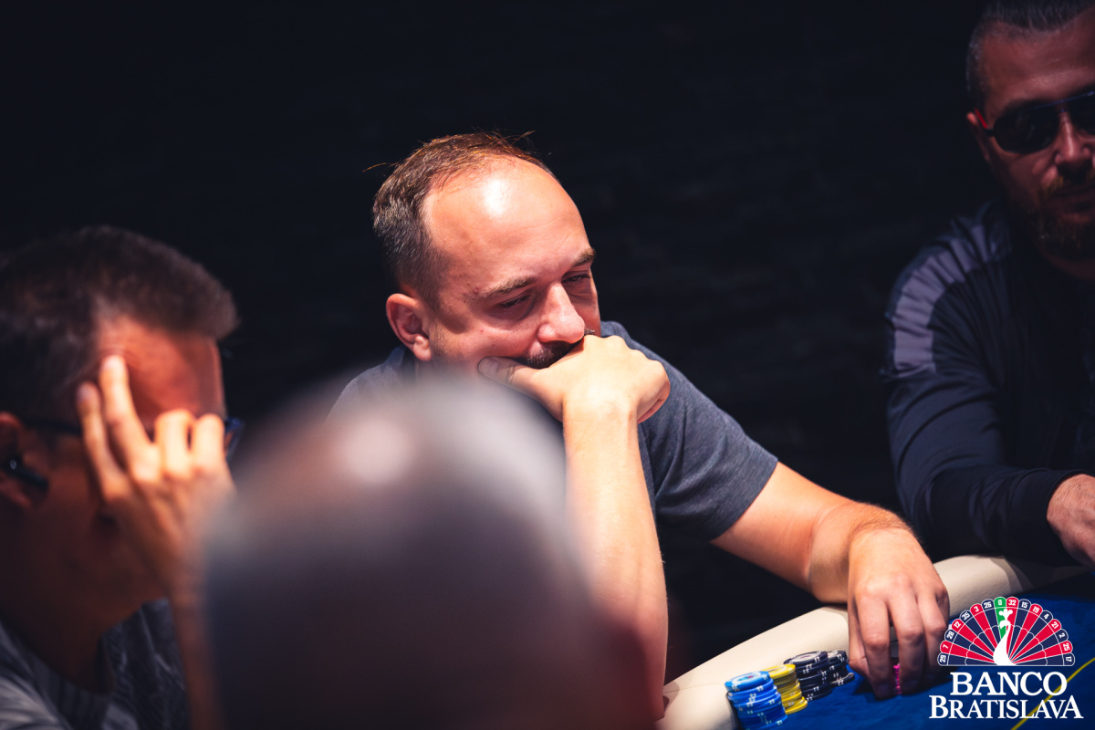 Jacek sa dostal za svojich asi 20 bb do preflop all inu s Kx Qx proti osmičkám, ktoré držal Miroslaw. Po blank boarde však Jaek turnaj nateraz musel opustiť.
