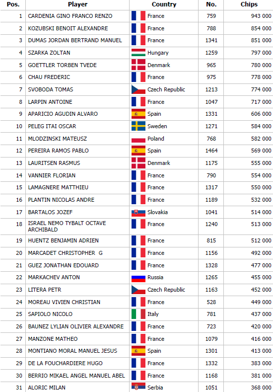 Do flightu 1C sa zapojilo celkom 635 hráčov a spoznali sme 107 postupujúcich. Chipleadrom sa stal Gino Cardenia so stackom 943,000. Do turboflightu sa zapojilo celkom 160 hráčov a do day 2 doplnil 27 hráčov. Chileadrom turbo flightu sa stal Dylan Patanchon so stackom 849,000. Počas dnešného večera sa registrácia do Main Eventu uzavrela a celkom sa zapojilo 1,516 hráčov. Prizepool sa tak vyšplhal na 667,040€. Day 2 odštartuje zajtra o 12:00, a aj v prípade, že sa Vám nepodarilo postúpiť, tak o akciu v Banco Casino Bratislava núdza nebude. Už o 13:00 štartuje Monster Stack svoj Day 1. O 14:00 pochúťka pre náročných v podaní Highroller eventu, o 16:00 Desperado KO, o 17:00 Ladies Event o 18:00 Mixed Games Event. O 21:00 na nás čaká tradične Sprint a o polnoci ako inak Deglingo. Tešíme sa na Vás !