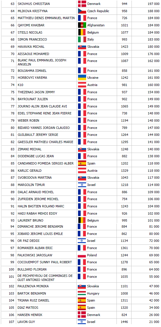 Nemo otváral na 12,000,Lemardeley, Lamagnere a štvrtý hráč v hre dorovnali. Na flope Ac 2c Ah Lemaderley betoval 12,000. Hráč na sb zahodil, Nemo Israel dorovnal a Lamagnere sa pridal tiež. Na turne 6c sa rýchlo checkovalo a na rivri 8s Lemagnere betoval 37,000. Israel zahodil a Lemardeley zaplatil. Lamagnere však otáča nekompromisne 5x 2x a pot berie.