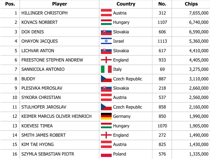 Štvrtý ročník Slovak Poker Open v Banco Bratislava v závere pokoril garanciu, vďaka pokrovej komunite a 1.211 registrácií sa zredukovalo na posledných 16 hráčov a tí dnes zabojujú o titul šampióna, na ktorého čaká odmena 40.585€. Sledujte livestream z finálového stola!