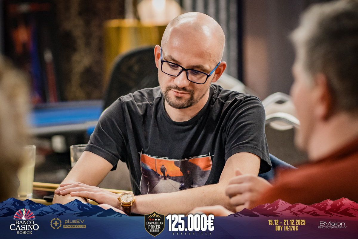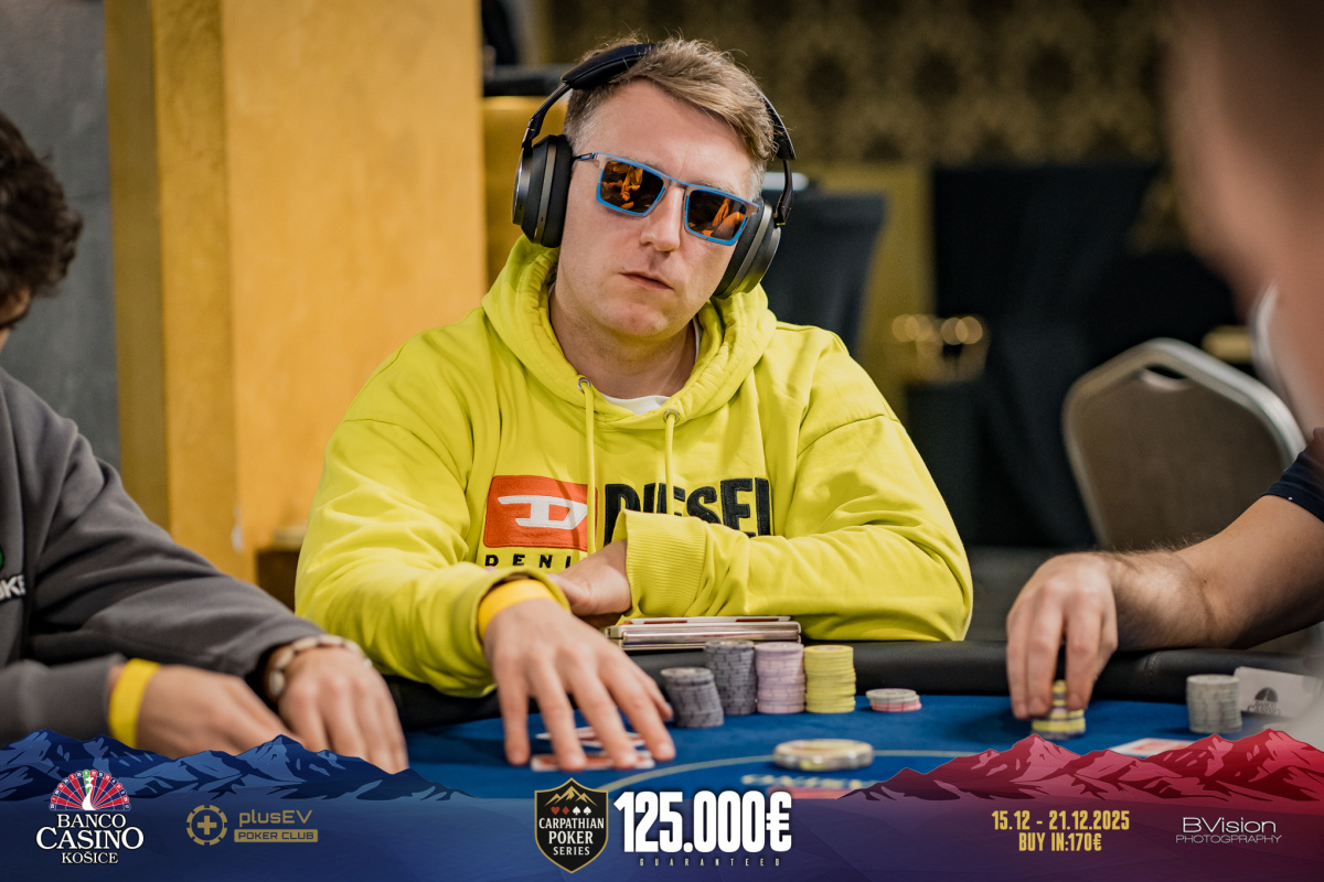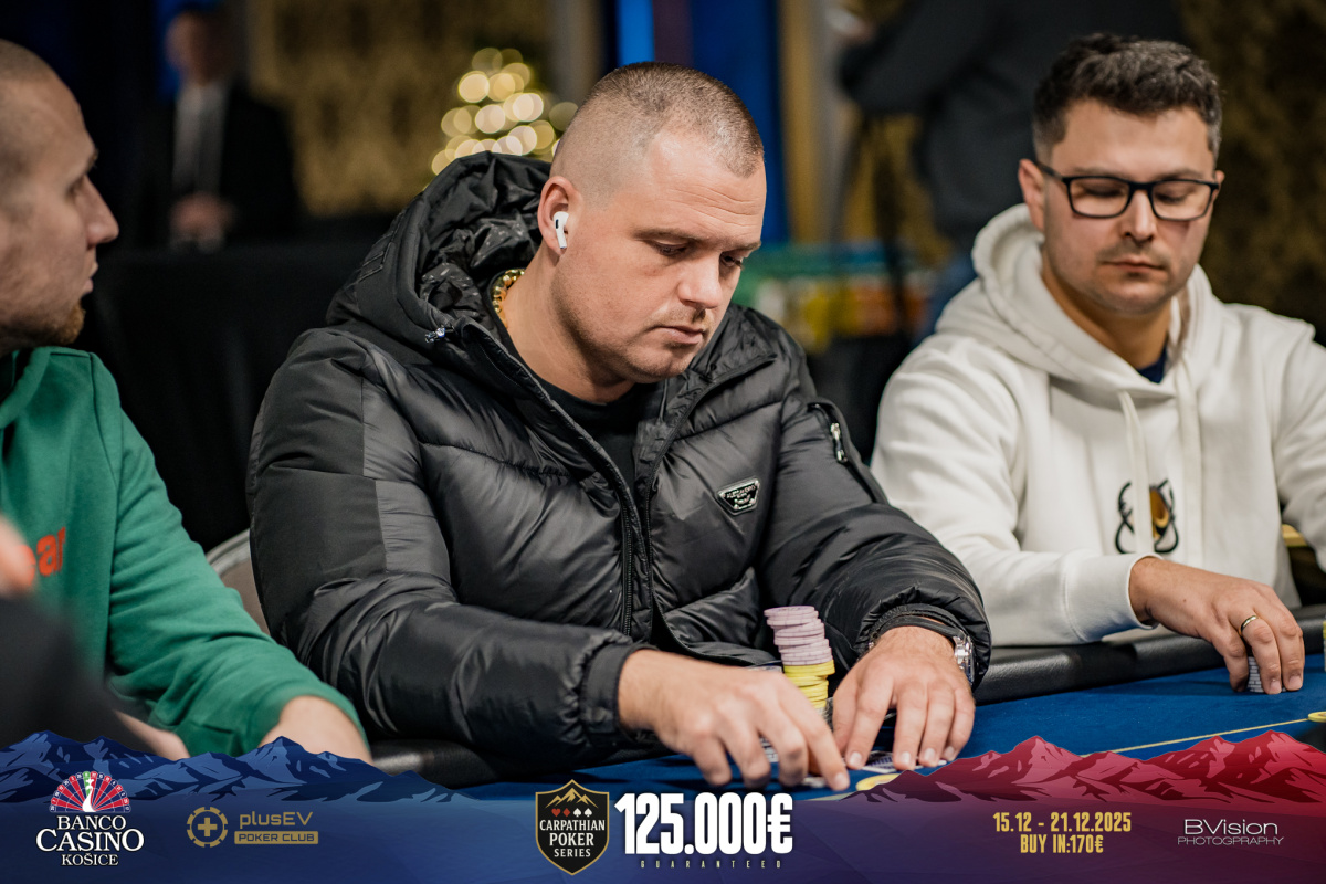 Lopatnik found himself in a perfect spot, where three players stacked pre-flop. Lopatnik with his 109K stack and pocket TT faced Takacs with AKo and Malinski with pocket 77. The board ran safe for TT, he even upgraded his hand with a completed full-house on the river and took a significant portion of Takacs chips for himself, while also eliminating Malinski from the tournament.