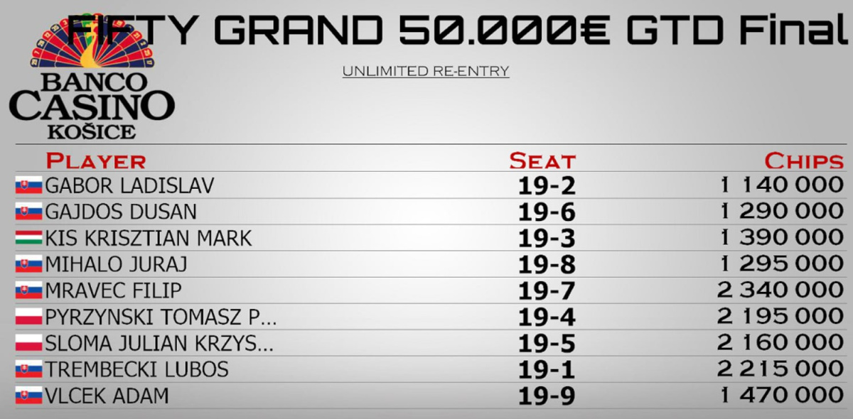 In the last game of the Fifty Grand, Mravec from SB raised to 600K, and Mihalo shoved his 5.5M stack. Mravec called with pocket 55 and stood against A9o under Mihalo´s hands. The board did not bring A or 9 and after safe river for Mravec he became a champion of the Fifty Grand tournament.