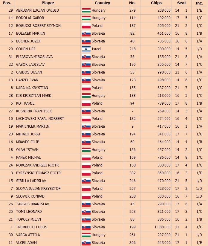 3. Pyrzynski - 4 015€ including 170€ ticket to Carpathian Poker Series 125.000€ GTD