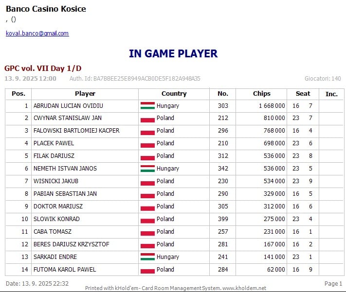 On Saturday another 14 players advanced into the finals from the Flight 1/D! Chipleader from this flight is Abrudan Lucian Ovidiu with stack of 1,668,000.The last chance to reach the FINAL DAY is here! If you don’t have your seat locked in yet, your final shot kicks off at 11:00 tomorrow with the Hyper Turbo, followed by the FLIP & GO starting at 13:00!