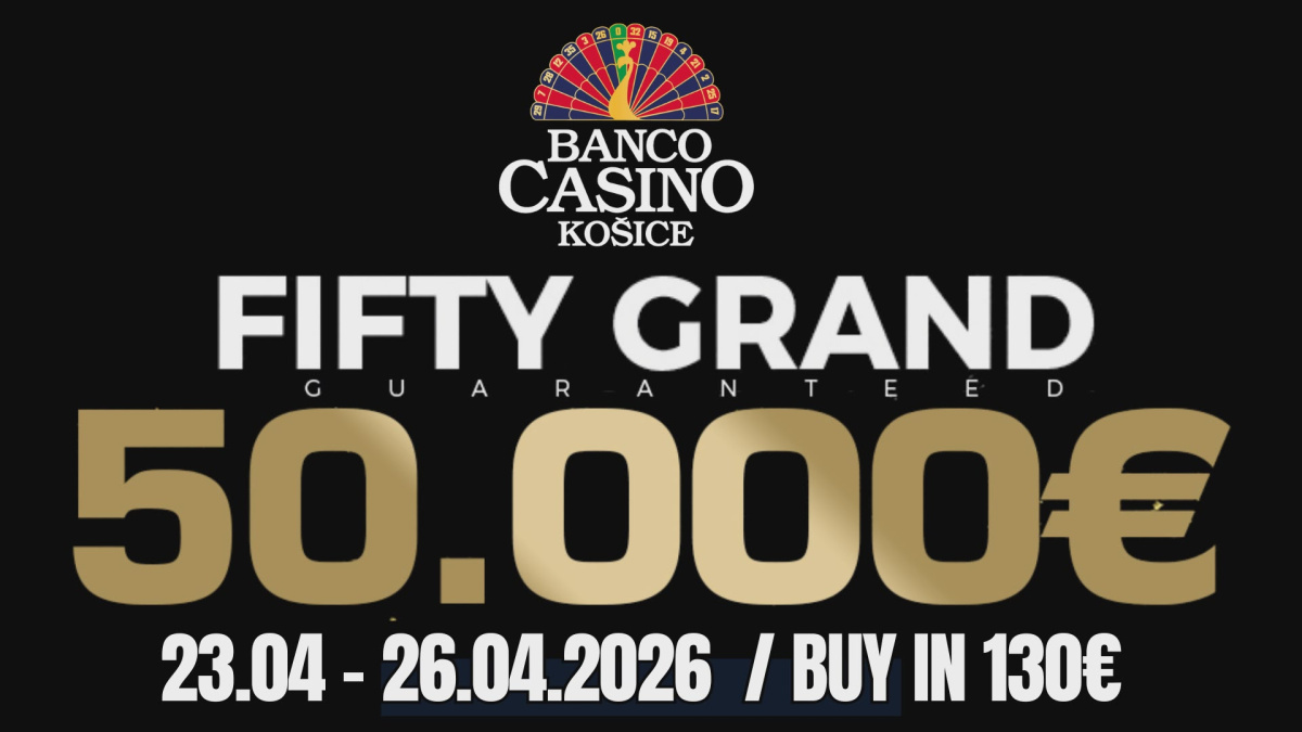 Join us at Banco Casino Košice for another edition of the Fifty Grand tournament with a €50,000 guaranteed prize pool, taking place from April 23 to April 26, 2026. Secure your seat for a €130 buy-in and compete for a share of the massive prize pool!