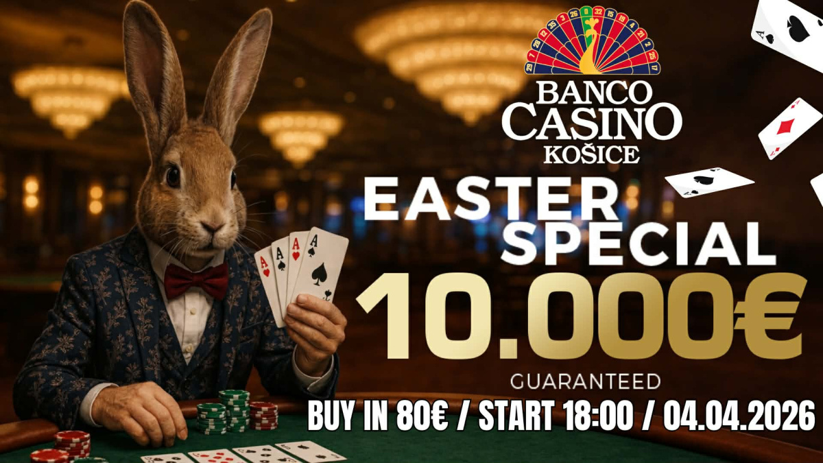 Celebrate the Easter season at Banco Casino Košice with the Easter Special tournament featuring a €10,000 guaranteed prize pool. Join us on April 4, 2026 at 18:00 and take your shot at the prize for an €80 buy-in!