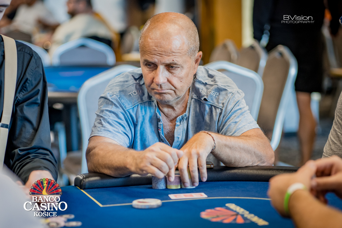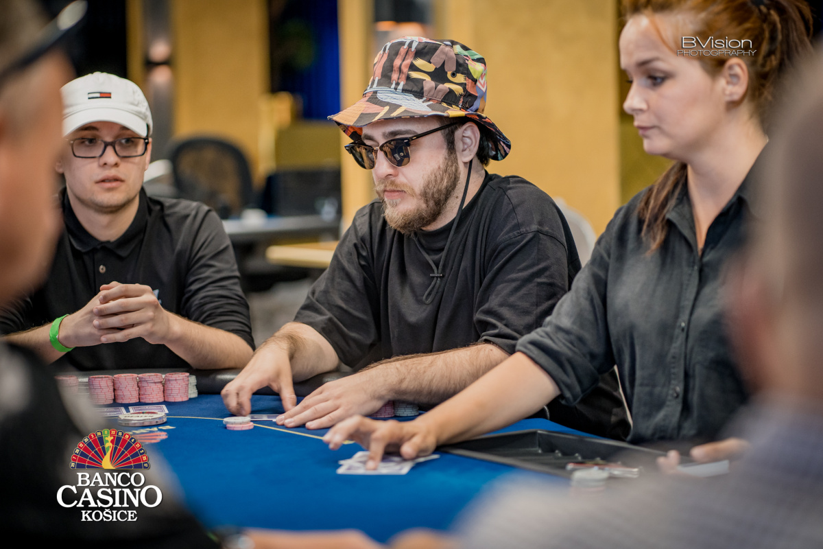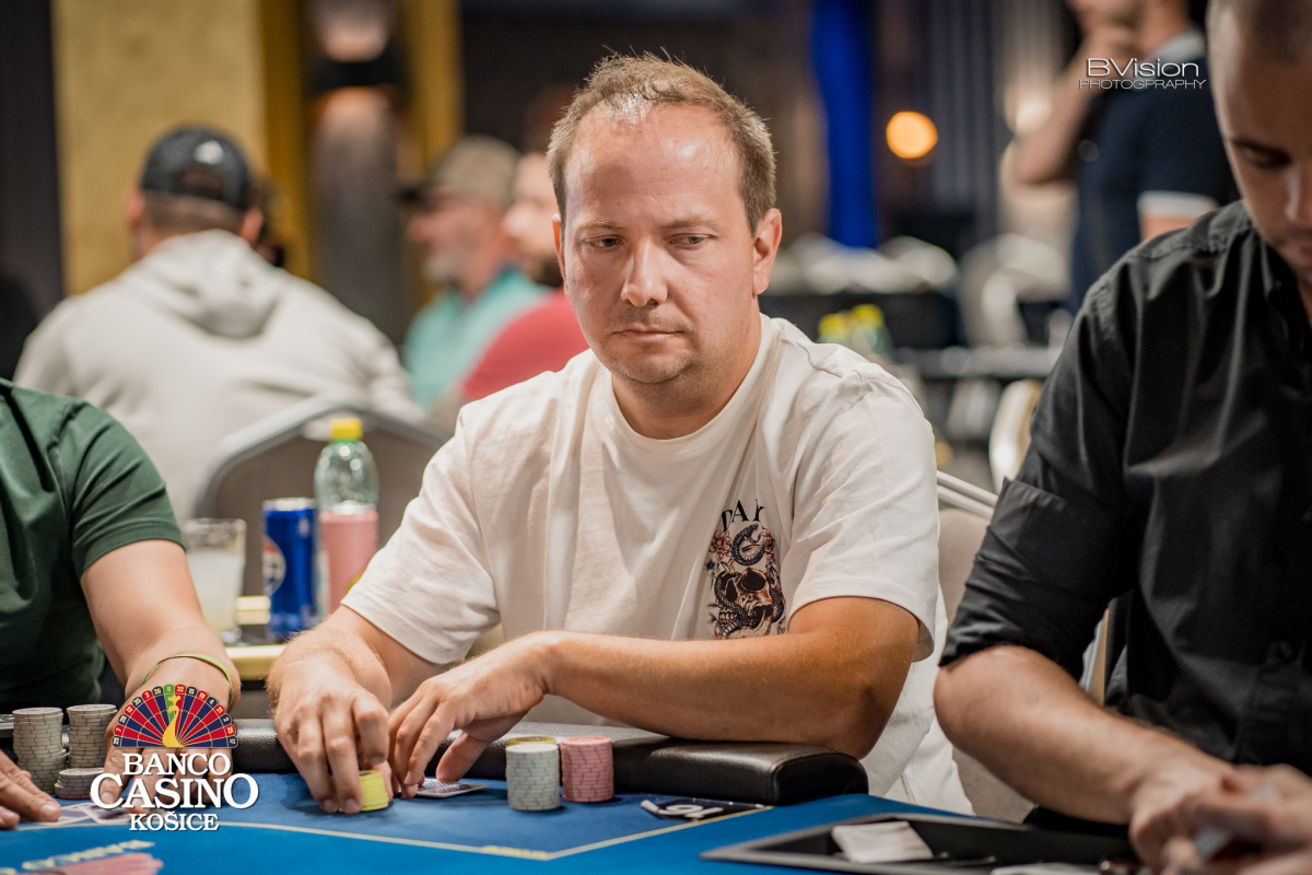 Hanusz otvára na 30k, Luman defenduje, flop 2-3-4 je precheckovaný, turn A Hanusz betuje 35k, Luman raisuje 100k a Hanusz posiela all in 450k, čo Luman plati so 6-5, Hanusz drží A-T a po rivri 8 končí a Luman aktuálne drží viac ako 1m stack.