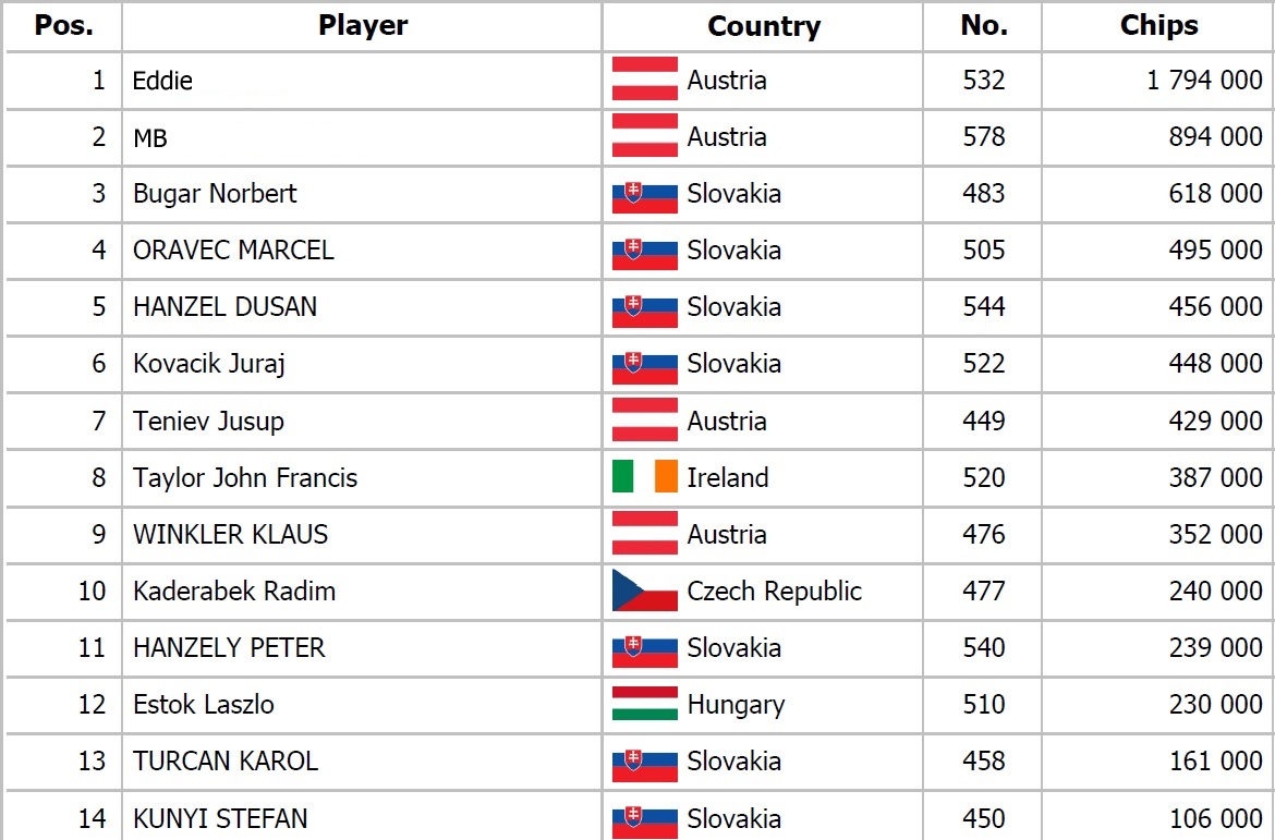 Am Samstag gab es im Banco Casino drei Gelegenheiten zum Weiterkommen, und wir haben die Namen der Qualifikanten und späteren möglichen Champions erfahren, die Sie unten finden: