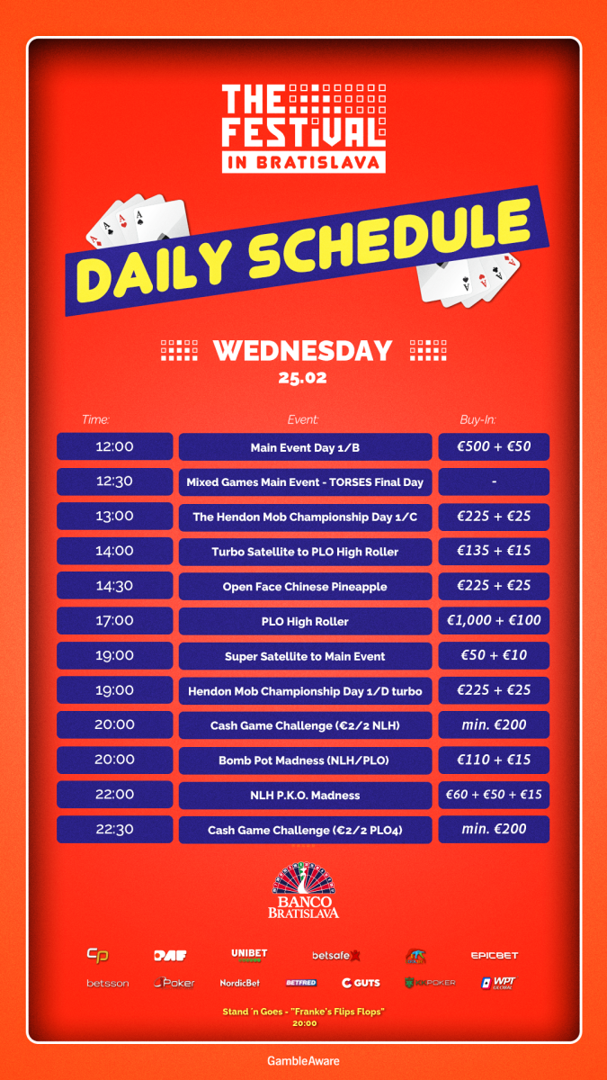V pondelok odštartoval aj The Festival Winter Edition – Special (23. február – 1. marec), jedinečný pokerový koncept známy najširším mixom hier a formátov v Európe. RAZZ, HORSES, PLO, Sviten, 8-Game či exkluzívne mixy robia z tohto festivalu povinnú zastávku pre každého, kto miluje rozmanitosť, zábavu a výnimočnú atmosféru.