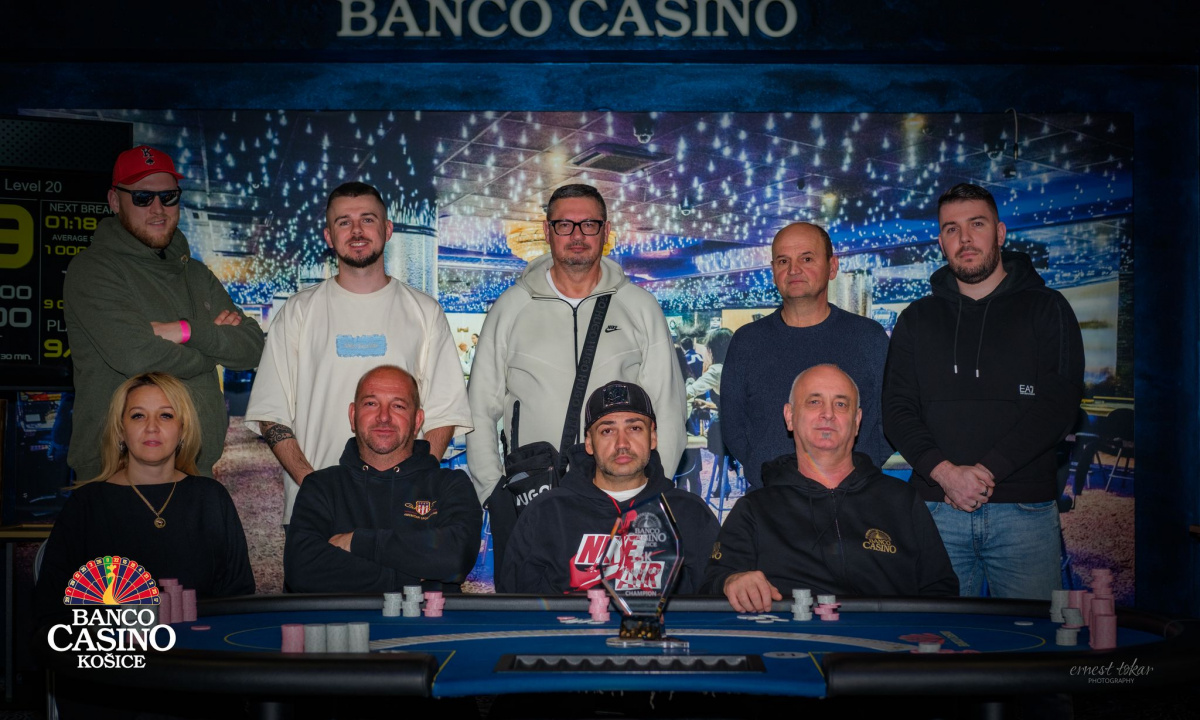 Po limpe Radošinského a Meetyho, raisuje Kostera na 15k, čo platia Kotán, Radošinský a Meety. Flop Q-9-8 bol bez akcie, no na turne Q po checku posiela Radošinský za čiaru 21k. Jediný platí Kotán s KJs a potrebuje vylepšiť proti 33 na ruke Radošinského. River 8 znamená, že Kotánovi stači na výhru K high.