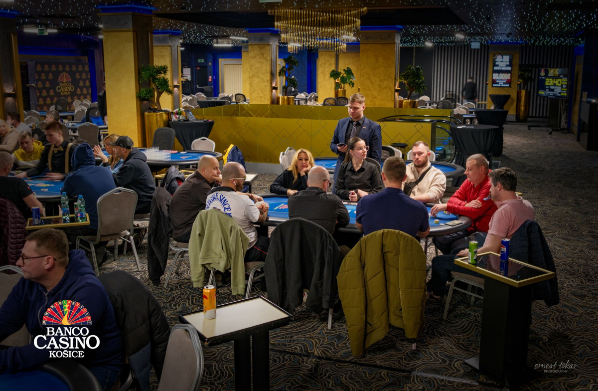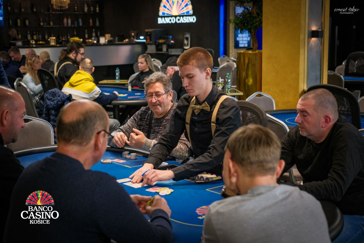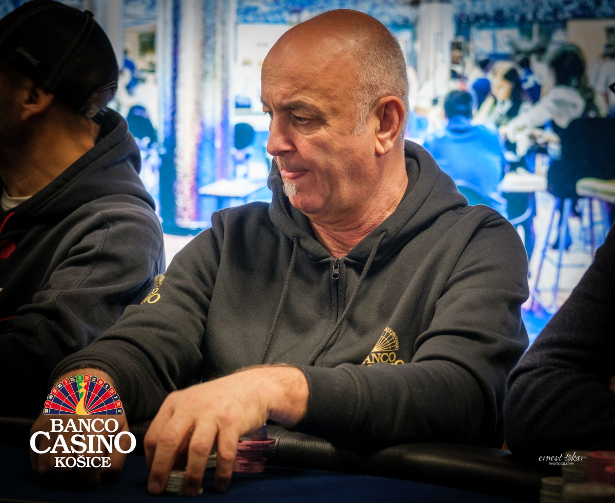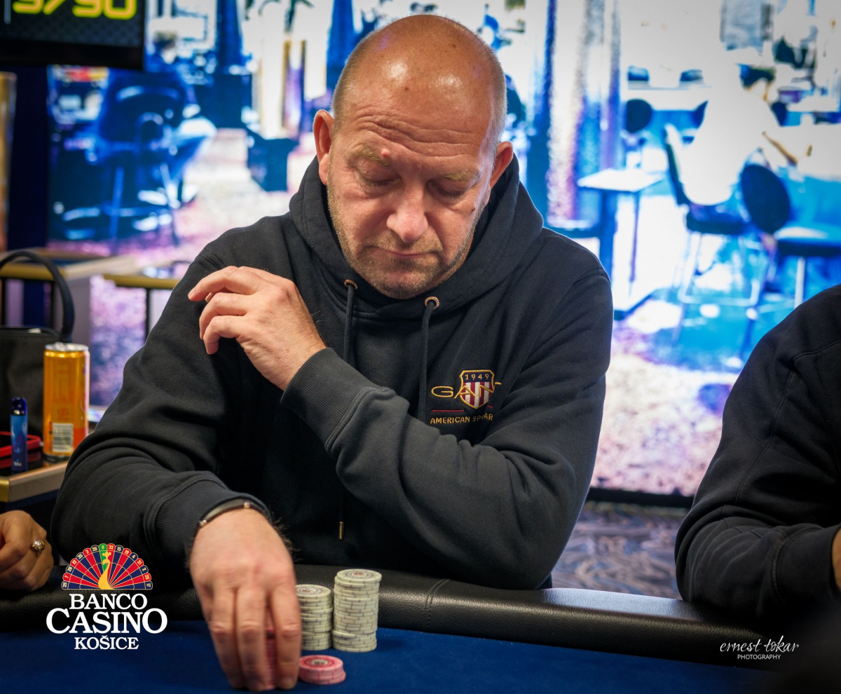V hre sa ocitli piati hráči na flope 7♦ 4♥ 3♦. Ilona vsádza 7k, Meszáros raisuje na 30k a Pošivák z BTN posiela za čiaru 120k stack. Derda z BB calluje so stackom 110k, na čo Ilona aj Meszaros karty zahadzujú. Pošivák otáča 99, no Derda drží 77. Po urn A♣ a rivri 2♥ Derda oslavuje double up.