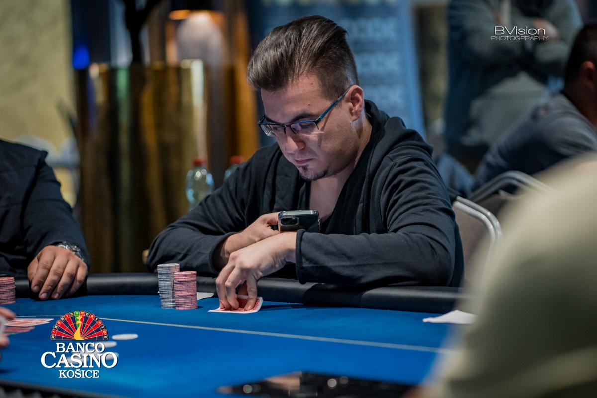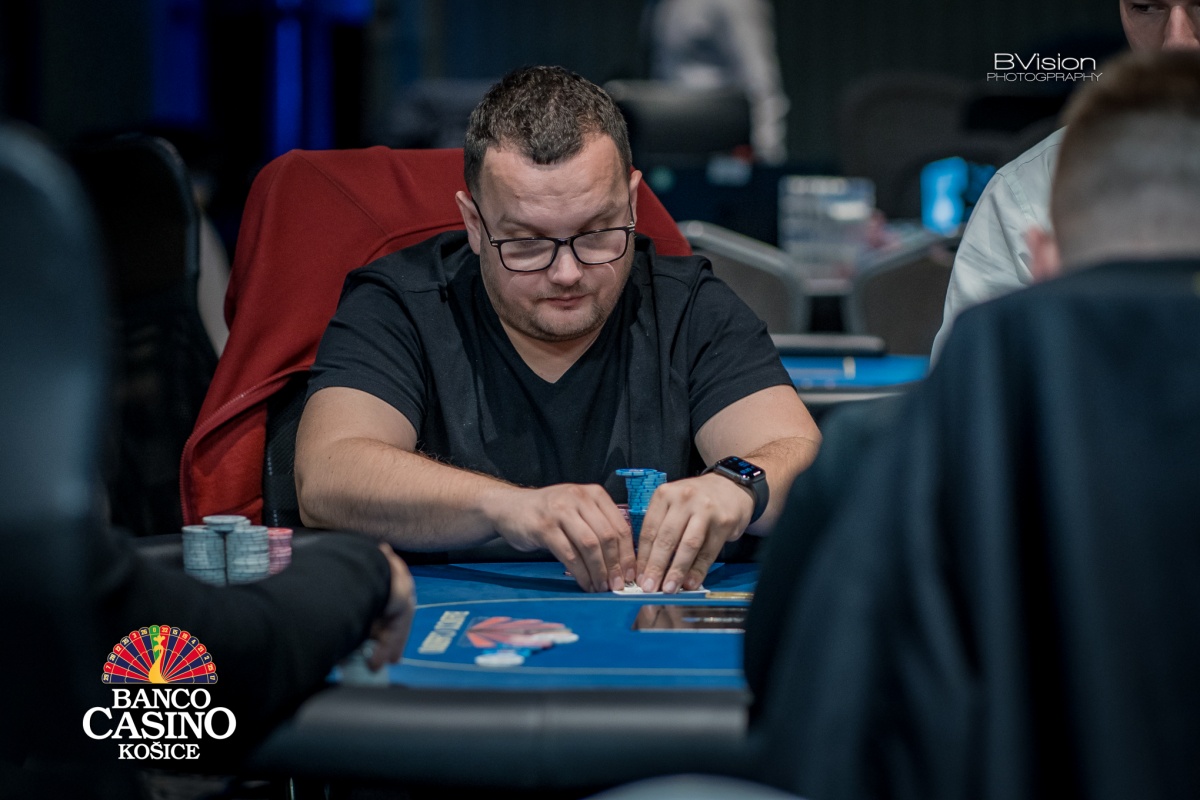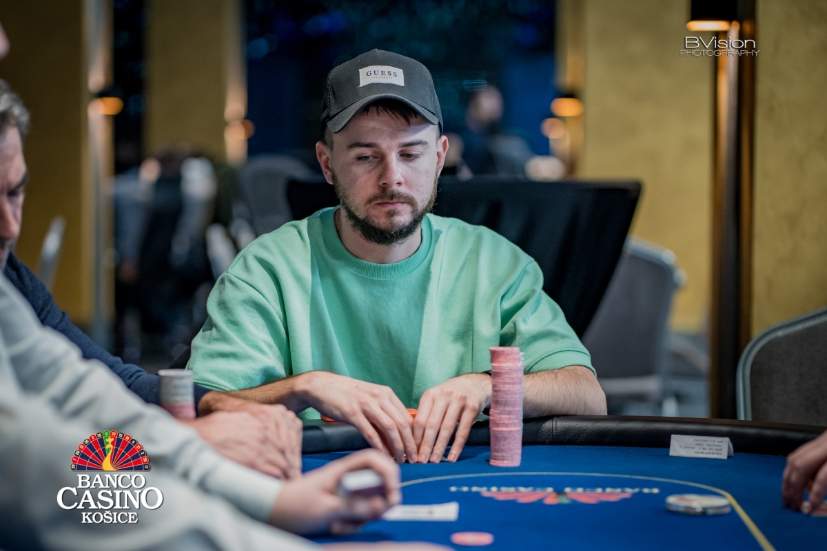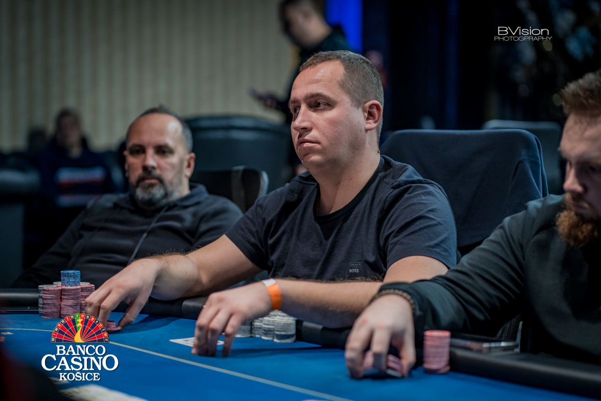 V 3 betovanom spote sa za 16,500 na flop 9♦ 6♣ 3♠ pozreli štyria hráči. Po sérií raisov sa traja z nich, konkrétne Rožok, Urban a Gábor ocitli v all ine, kde Rožok držal A♠ K♥, Urban 9♣ 4♣ a Gábor so setom trojok mal tak výrazne našliapnuté k vyradeniu dvoch súperov. To sa mu aj darí po turne 5♠ a rivri 5♥ a Gábor tak stúpa na cca 300,000 stack.