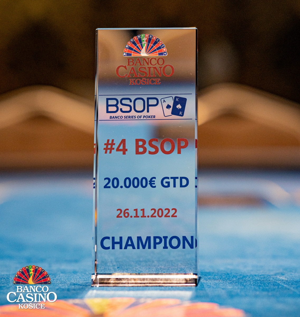 Víťazom štvrtého turnaja zo série Banco Series of Poker sa stáva Kosár Peter, ktorý dokázal svoju pole position, s ktorou nastupoval na finálovy stôl pretaviť až do zisku trofeje a po deale v heads upe si z Banco Casino Košice odnáša zaslúžene 4.557€ vrátane 120€ ticketu na BSOP #5.