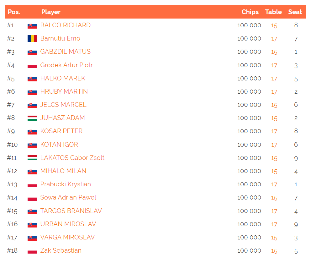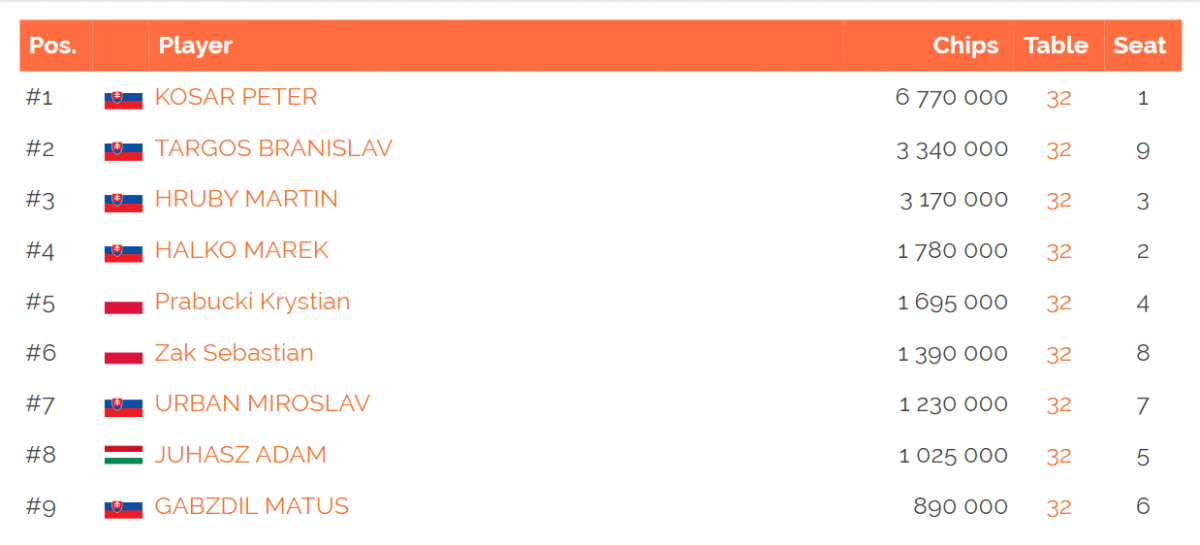 5:27 5. miesto - Haľko Marek - 1.444€ vrátane 120€ ticketu na BSOP #5