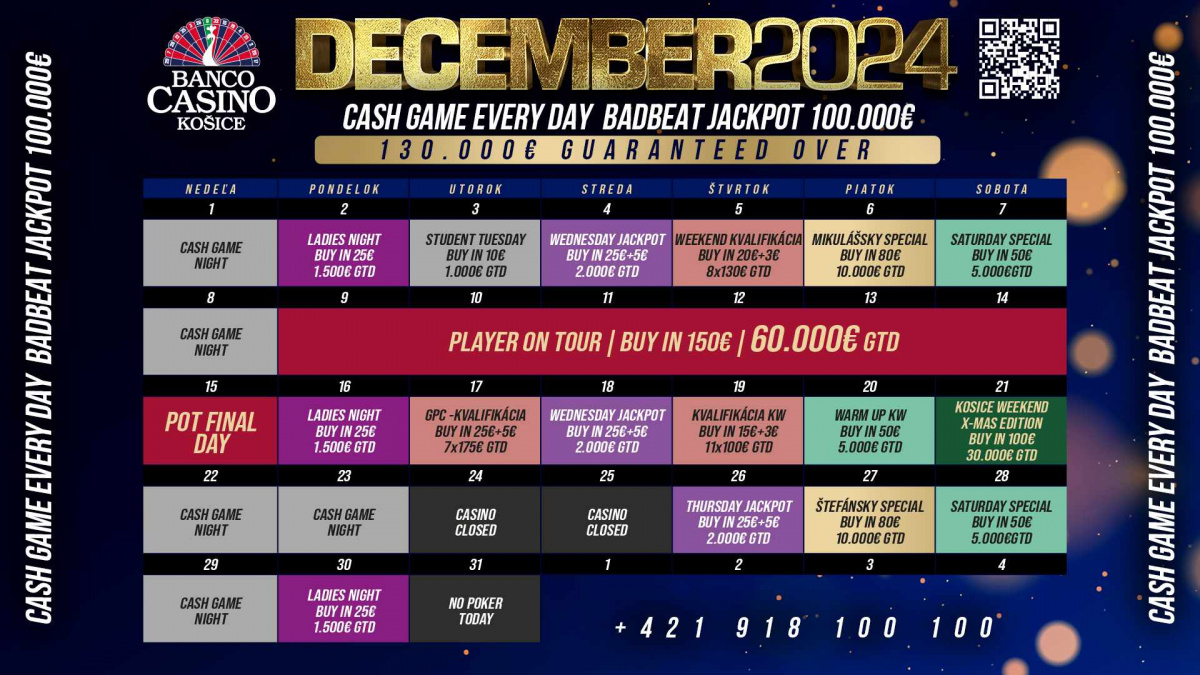 Pred Vianocami bude pre vás pripravený jeden z highlightov mesiaca v podobe Košice Weekend X-mas Edition, ktorý 21.12.2024 prinesie navýšenú 30.000€ garanciu pri nezmenenom 100€ buy-ine.