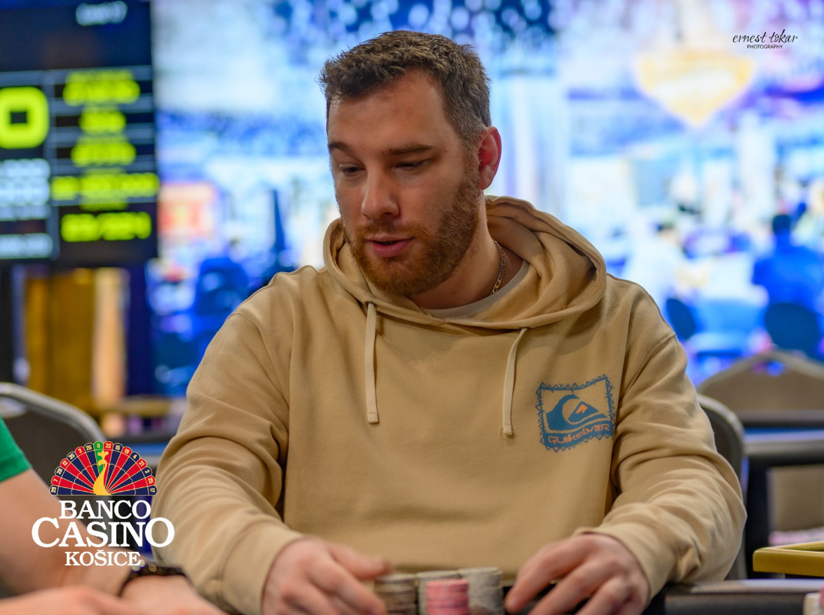 Po opene Tocikovej na 2k a calle Chrabaszcza, Balogh v pozícií 3betuje na 11k, čo platí len Chrabaszcz. Flop 9♥ 8♣ 2♦ cbetuje Balogh 8,5k, čo dostáva zaplatené, turn 3♥ sa akcia opakuje za 27k, no na river T♠ sa Chrabaszcz rozhodol pre lead 30k, čo Balogh snapuje. Chrabaszcz otáča Q9s, no Balogh berie pot s AA.
