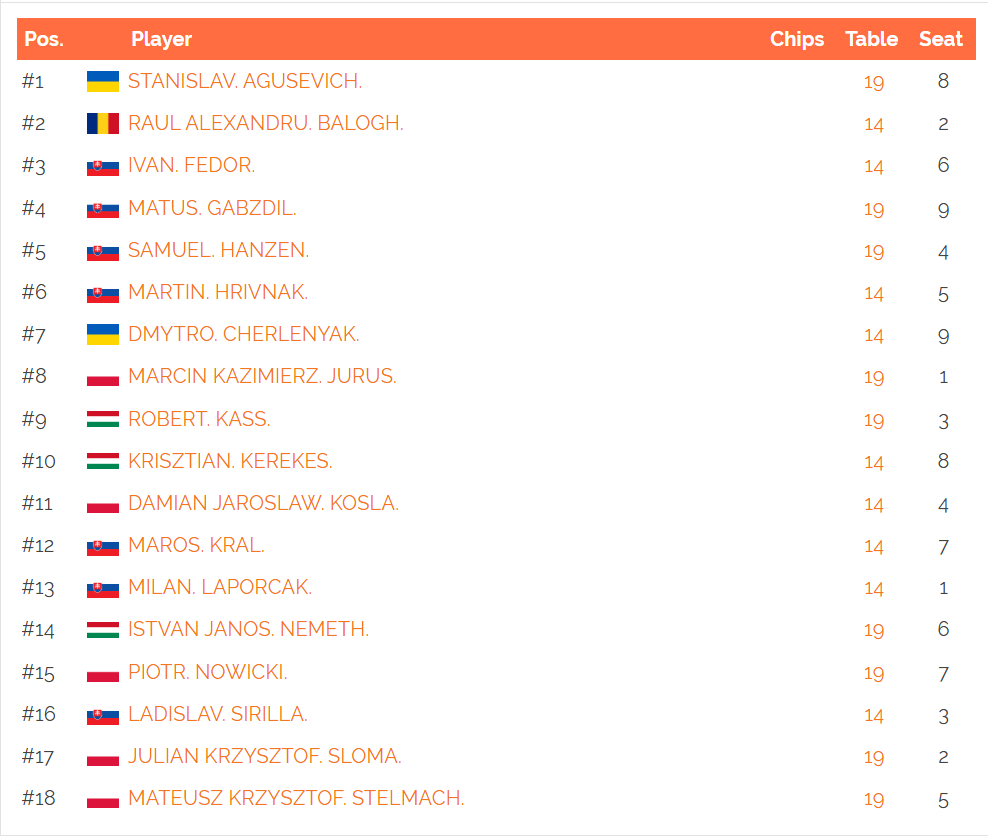 Laporčak, Mariňák, Sciranka no prevažne hráči z Maďarska, Poľska či Rumunska.