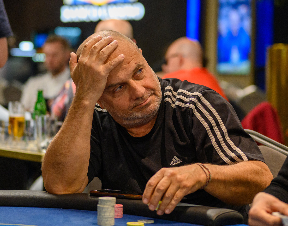 Onedlho sa s turnajom rozlúčil aj Mudrák, ktorý sa stackol s AJo pre-flop s Jurajom Mihalom, ktorý čakal na akciu s párom KK. Hoci Mudrák na turne trafil už svoj druhý pár, zázračná Q na river kompletizuje Mihalovi straight a eliminuje Mudráka z turnaja.