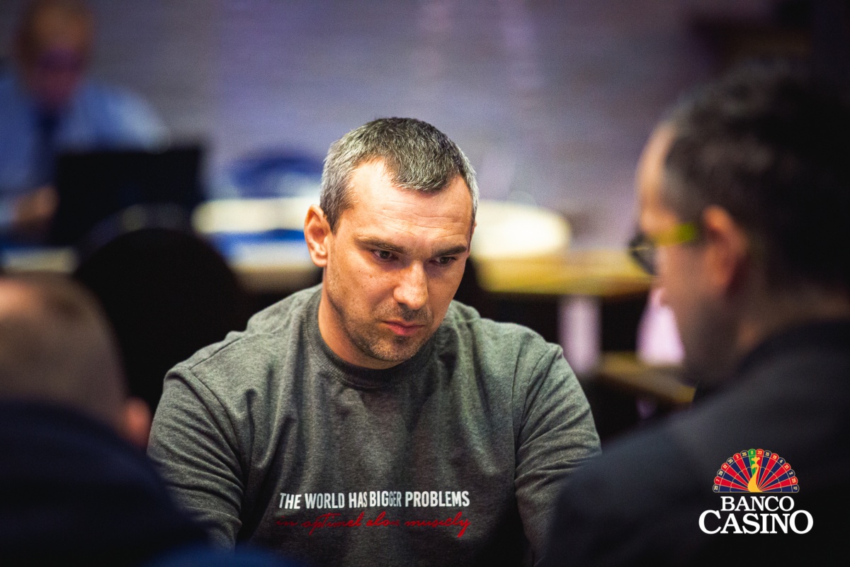 Mathias otvoril na 20,000 a dorovnali Olešňan, Shcherba, Kapiciak aj Bartko. Na flope 2c 8c 7d Mathias betol 35,000 a všetci súperi postupne pozahadzovali. Na vedľajšom stole približne v rovnakom čase vypadol Martin Muller.