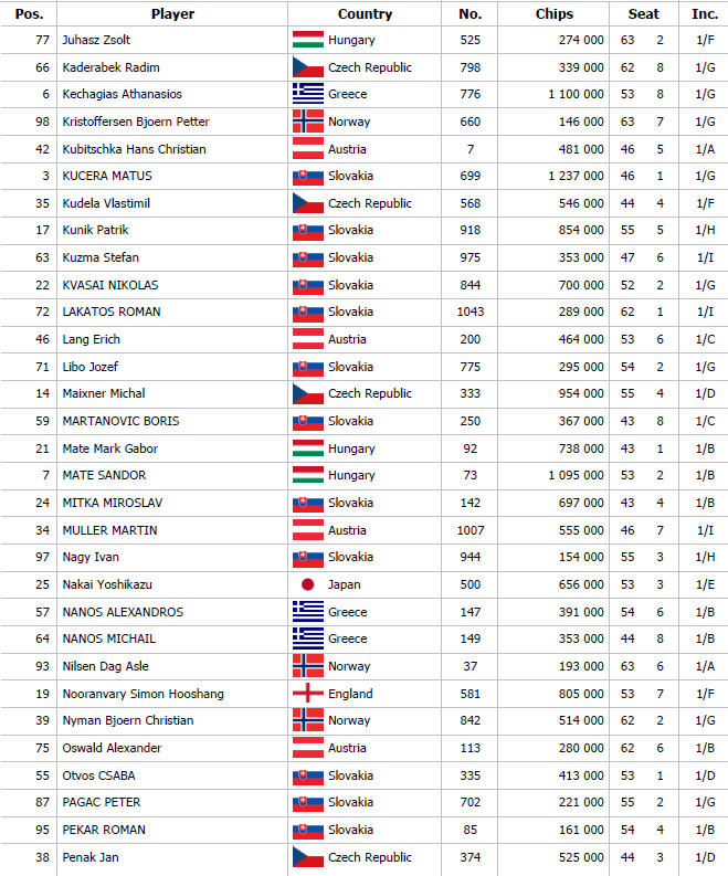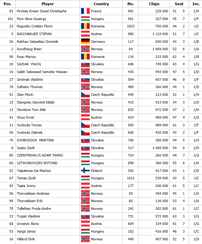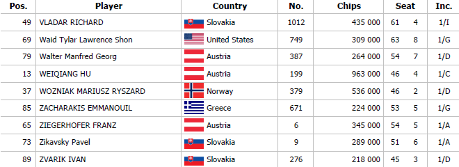 Pred sformovaním finálového stola sa s nami rozlúčili títo hráči: