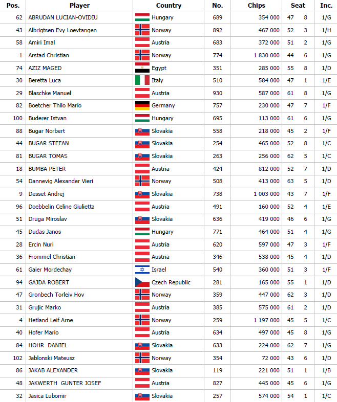 Leif Hetland poslal jeho 1,430,000 s Ax Qx a Desset dorovnal s desiatkami. Nik viac sa nepridal a po blank boarde 3x 3x 8x Xx 8x Andrej vyraďuje ďalšieho súpera.