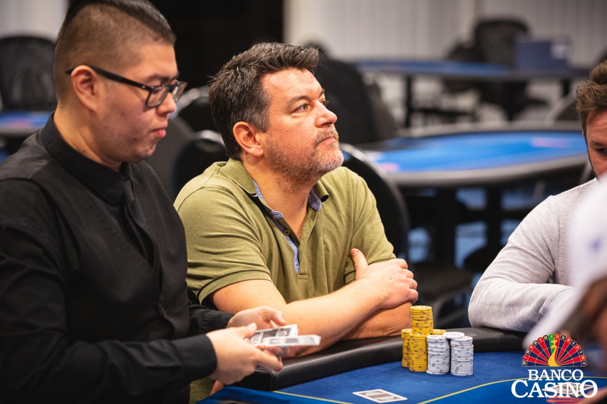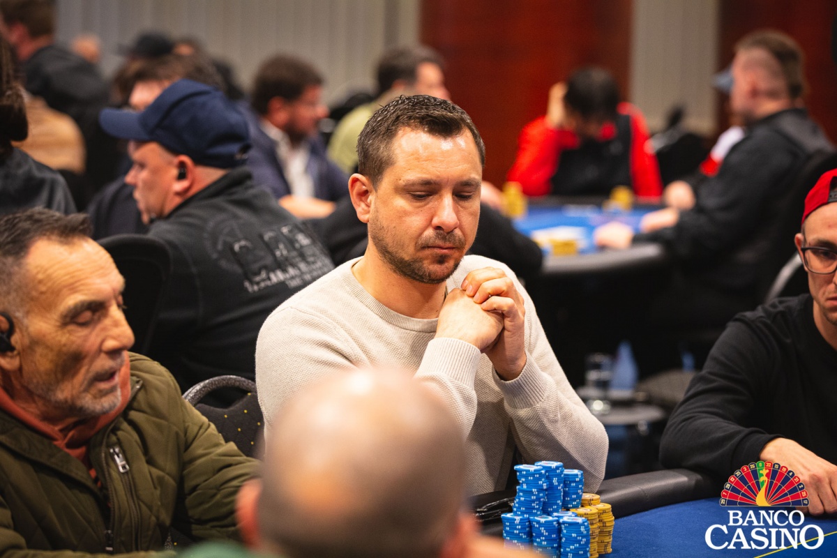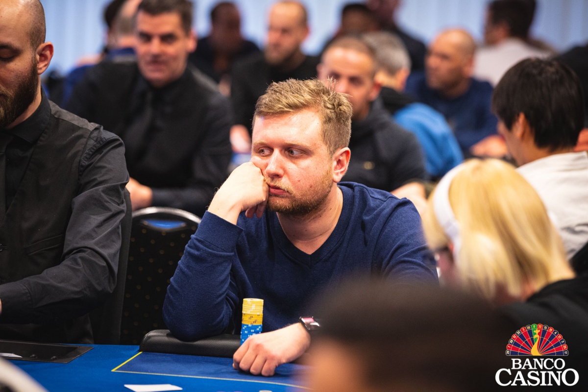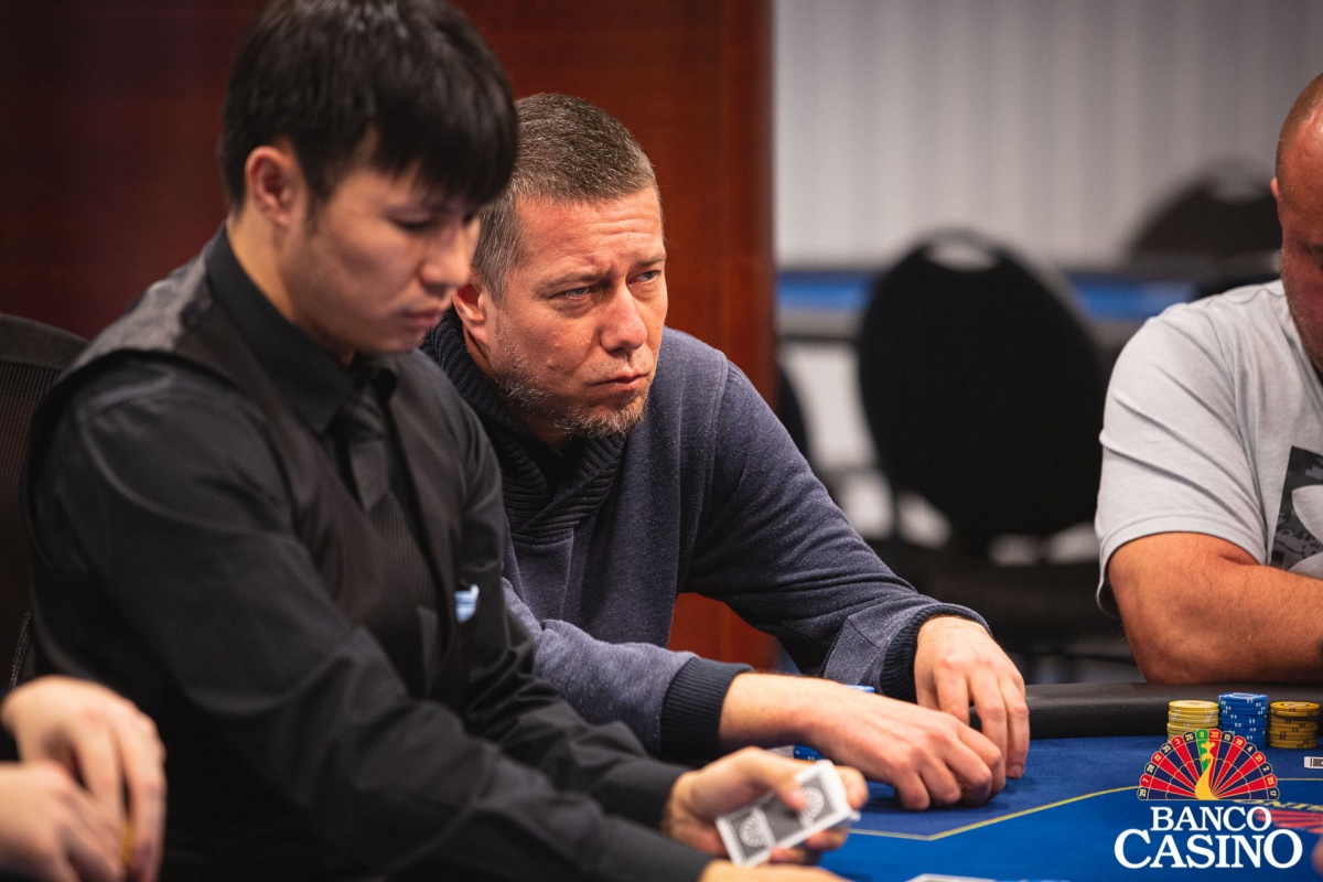 Simon natlačil do hry 2,700,000 s Ax Kx proti Erwanovi Pirotaisovi so sedmičkami. Board Ax KX 5x 6x Qx tentokrát podržal Simona a dostal tak potrebný double up. Na vedľajšom stole z turnaja vypadol Yoshikazu Nakai a je tak jasné, že titul z Banco Casino Championship sa do japonska nedostane.
