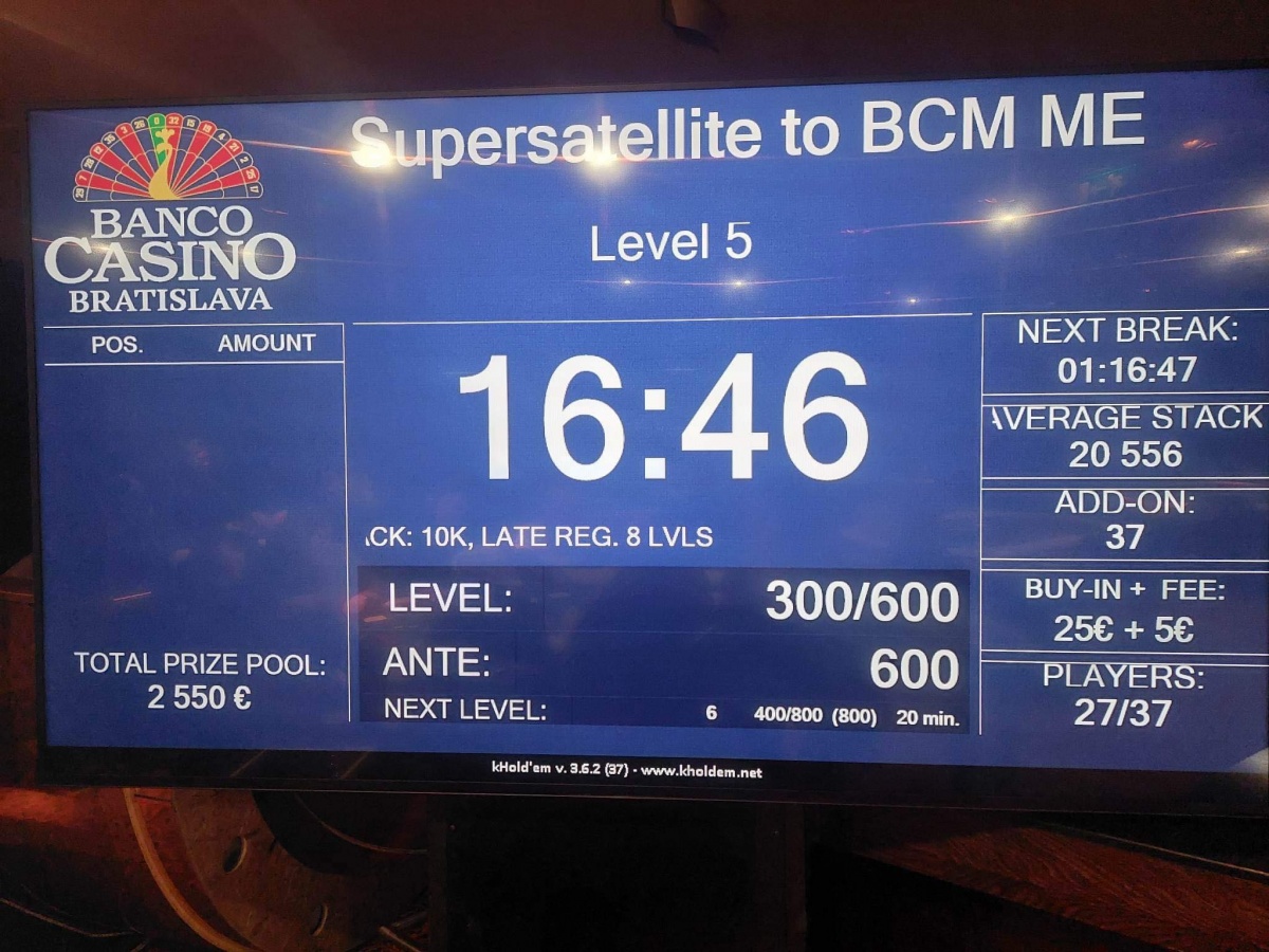 Do flightu 1A Banco Casino Masters 250,000€ GTD naskočilo celkom 73 hráčov a po akčnej noci sme spoznali sedmičku postupujúcich do day 2. Tú po dnešku vedie Beny Tzitzov so stackom 1,212,000. Dnes od 18:00 je pre Vás pripravený flight 1B a kompletný rozpis nájdete pod príspevkom. Tešíme sa na Vás !