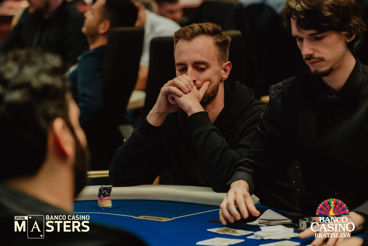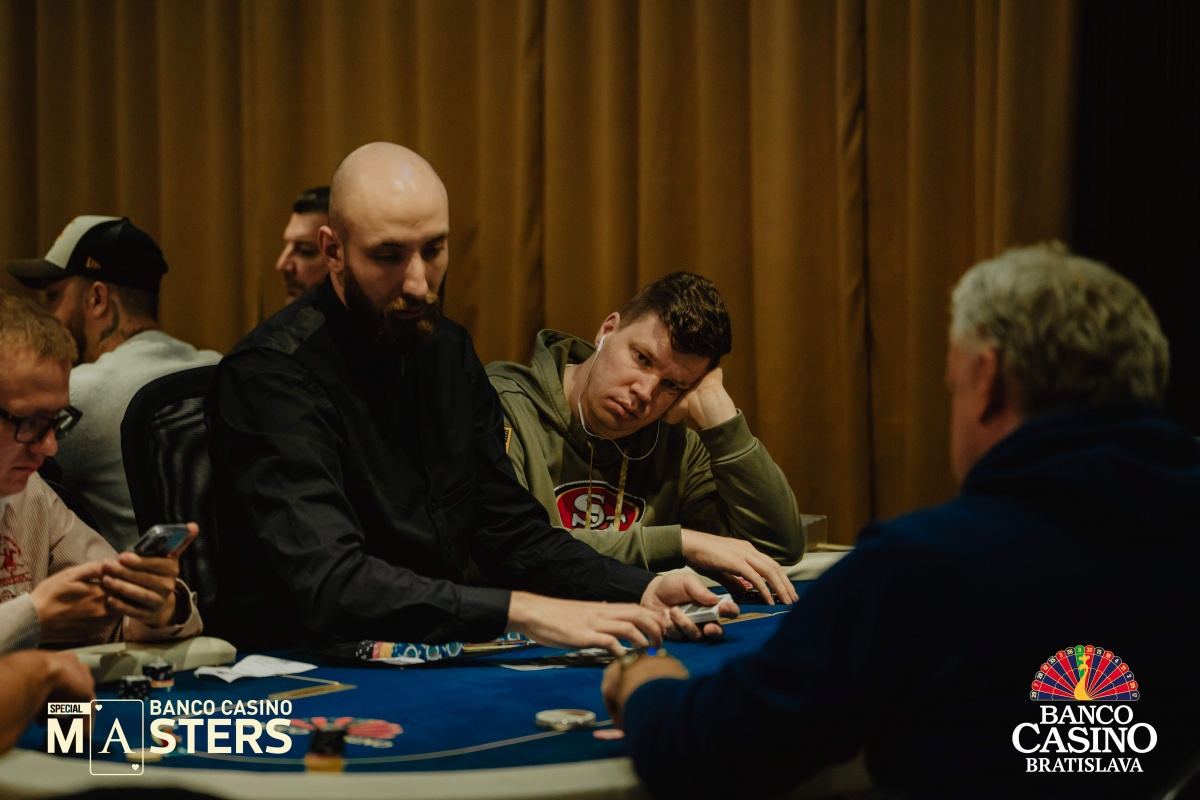 Michael dostal svoj short do hry so šestkami proti dvojkám ktoré si našiel Maksym Ronshyn a Ax Tx ktoré držal Miro Mitka. Board 8x 7x Ax Jx Ax už ďalšiu akciu nepriniesol a bol pre flight 1B posledným.