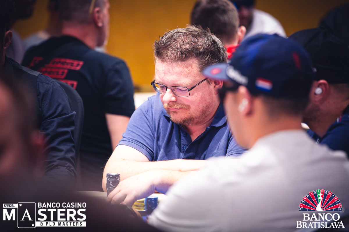 Marius sa dostal do preflop all inu za asi 70,000 so štvorkami proti Kx Kx ktoré držal Markus Rieger. Po boarde Tx Qx Jx 8x Tx sa tak Marius musí nateraz rozlúčiť.