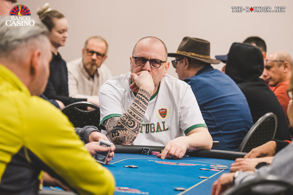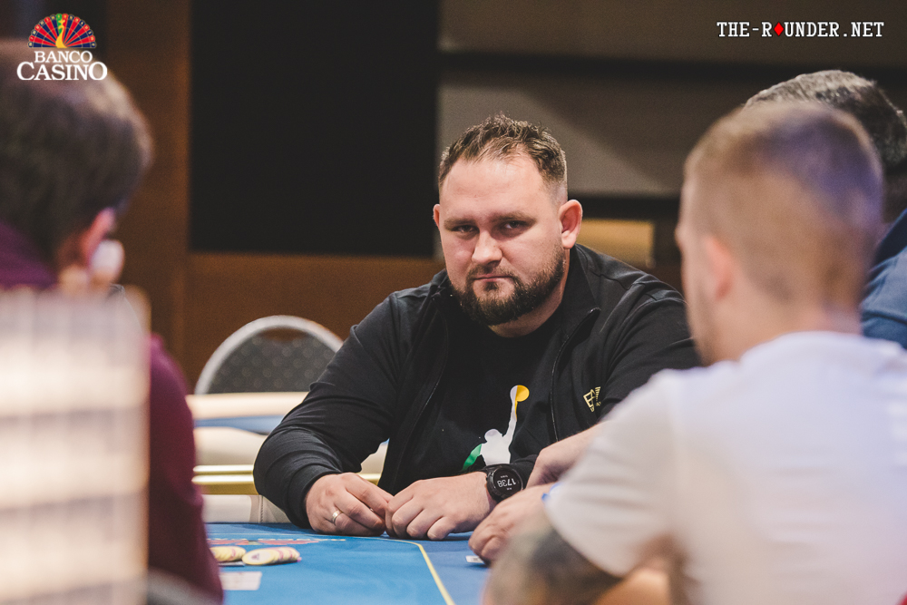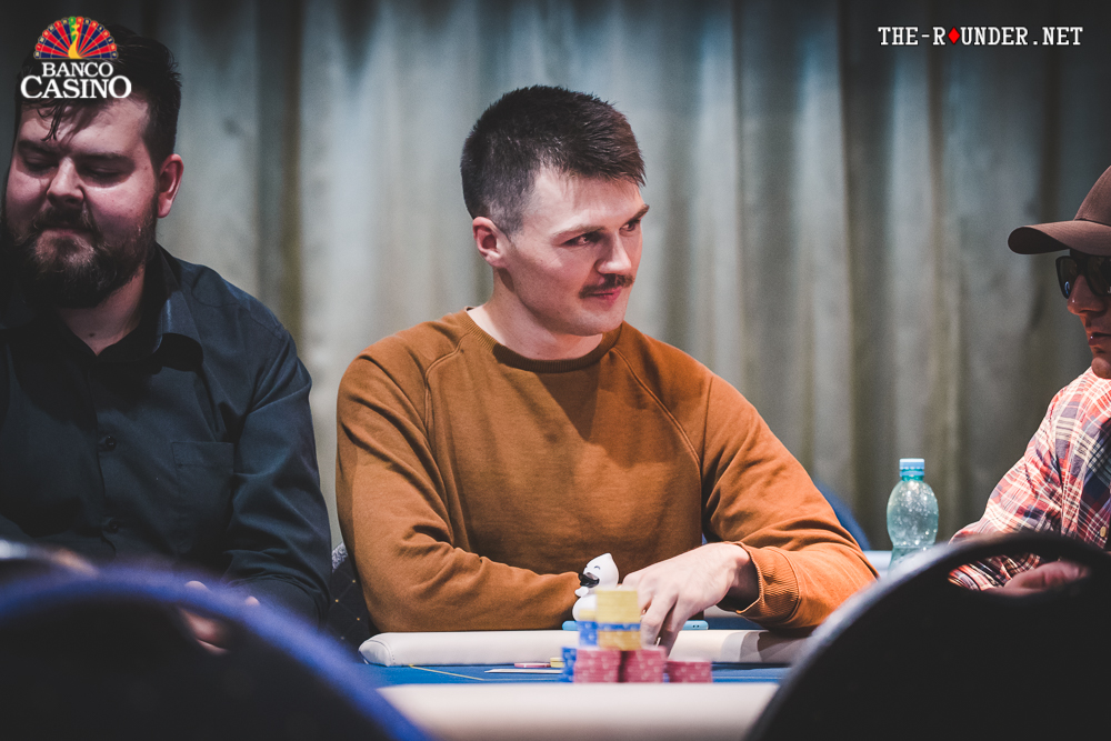 Na turne 9c Jc Ad 8d betoval Matúš 6,000 z Co, Marios Stefani raisol na 16,000 a Spyrou z blindov dorovnal. Matúš dlhšie hútal a nakoniec asi 100,000 posunul za čiaru. Marios okamžite dorovnal a po chvíľkovom sebapresviedčaní Spyrou karty zahodil.