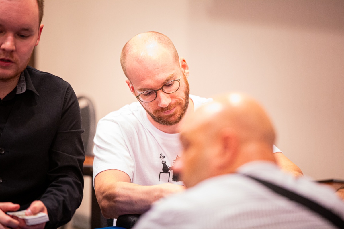 Solymosi otvoril na 3,000 a Mursza poslal svojich 13,800 s Kx Qx. Ostatní uhli a Solymosi dorovnával s Ax Tx. Blank board v podobe 4x 8x 7x 5x 5x tak Norberta posiela z hry von.