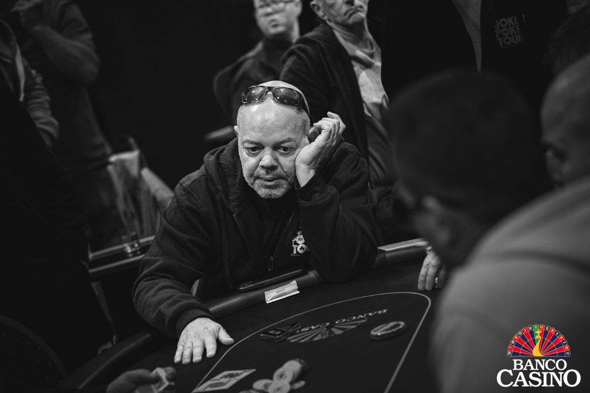 Marinis dostal 148,000 za čiaru s Ac Qc proti Davidovi s Qx Qx. Po boarde 7c 2c 8d 9c Jd si tak Marinis pripisuje double up. Na vedľajšom stole z turnaja vypadla Linda Huber a hráme tak hand for hand.