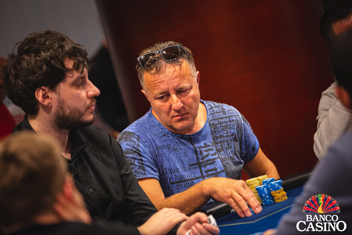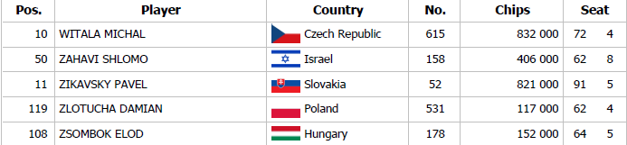David sa dostal za jeho 865,000 do preflop all inu s Ax Kx proti Kx Qx ktoré držal Laszlo Nagy. Po boarde Ax 8x Jx 6x 9x si tak David pripísal double up . Na vedľajšom stole z turnaja vypadol Peter Apostol.