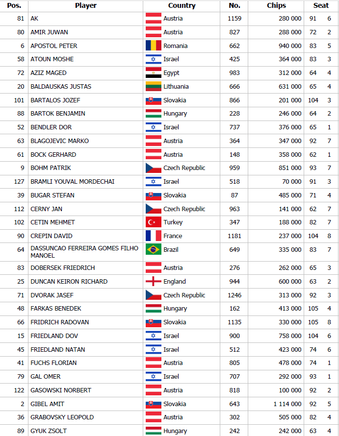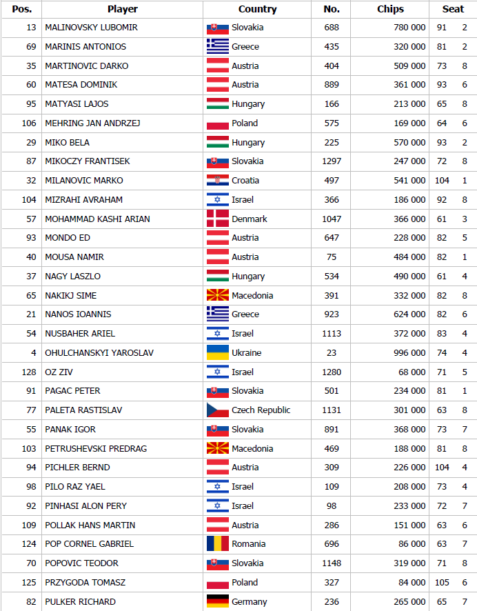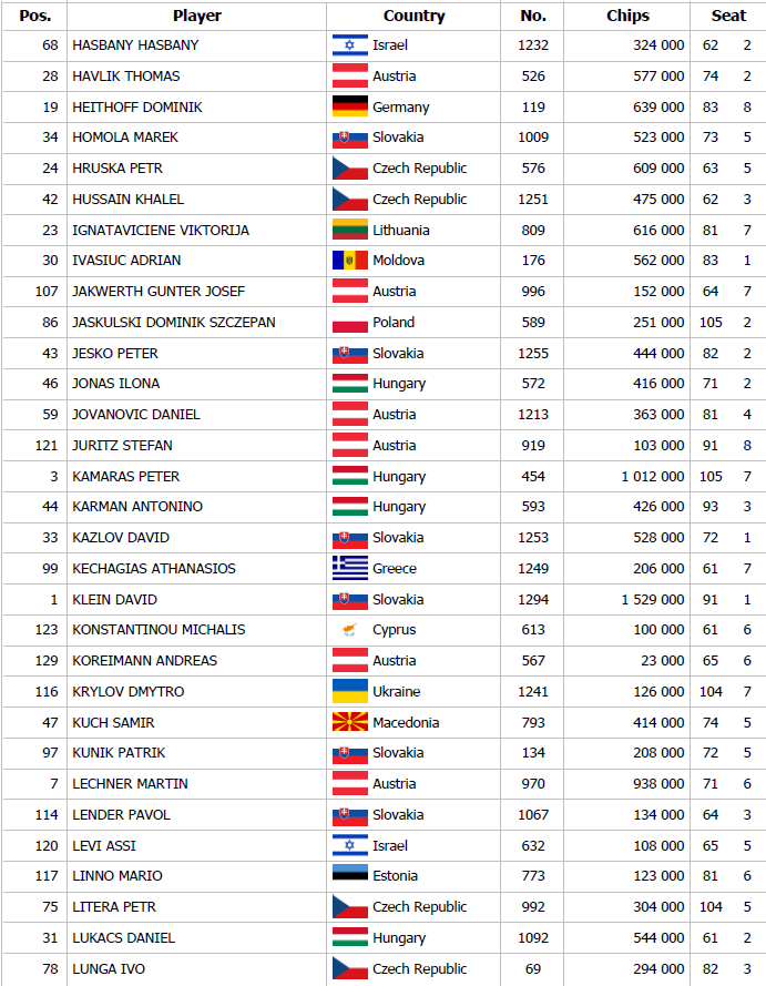 Po vyčerpávajúcom day 2 sme spoznali šesnástku postupujúcich hráčov. Na chiplead sa postavil Peter Kamaras so stackom 9,175,000. O tom, kto si zajtra odnesie 39,820€ určených pre víťaza sa rozhodne už zajtra od 16:00. Od 19:00 je pre Vás pripravený BCM Farewell Turbo Deepstack 5,000€ GTD. Tešíme sa na Vás !