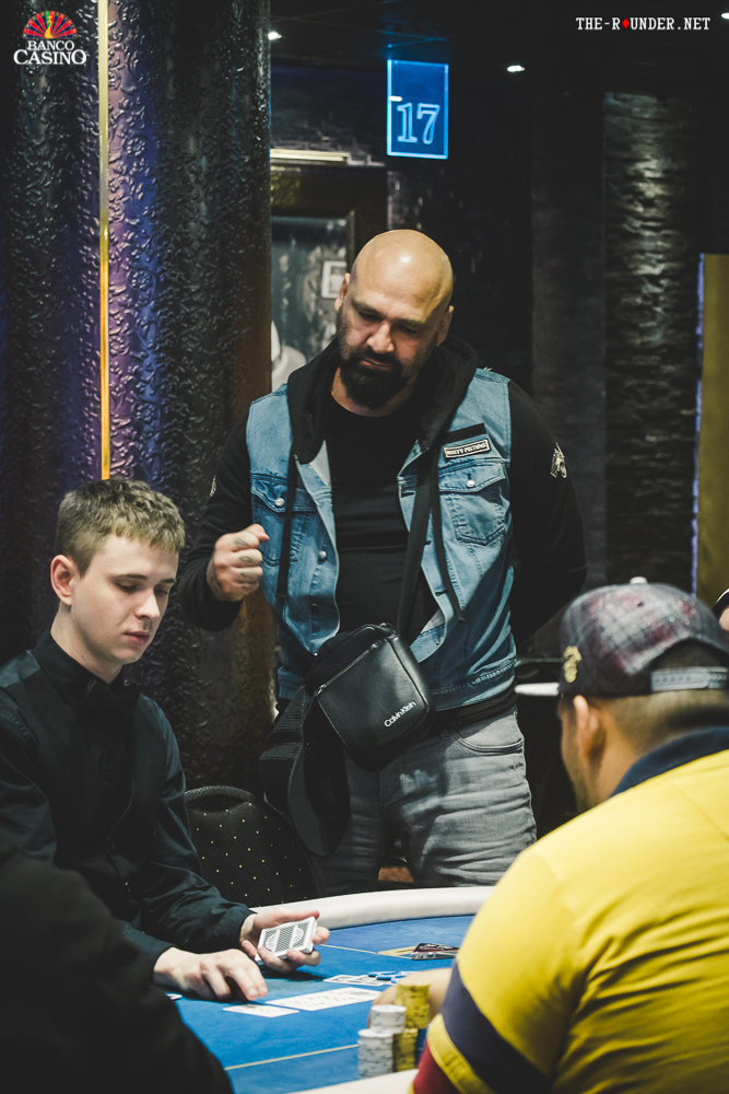 András Matrai limpol z buttonu, Pichler posunul 1,800,000 za čiaru a Yankov po hodnej chvíli znova naštvane zahodil. Matrai si nechal prerátať súperov stack a nakoniec zahodil.