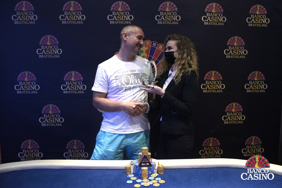 Franz poslal Ax 7x, Gabo dorovna s Kx 8x. Pred vyložením flop pýtal kinga. Flop Kx 9x 4x bol fajn. Turn 5x a river 4x turnaj ukončili a Franz si odnáša za druhé miesto 2,618€ + 170€ ticket na Banco Casino Masters.