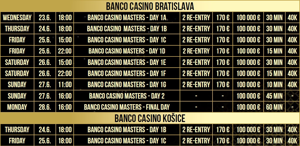 25.vydanie Banco Casino Masters s tradičnou garanciou 100,000 € už od stredy !