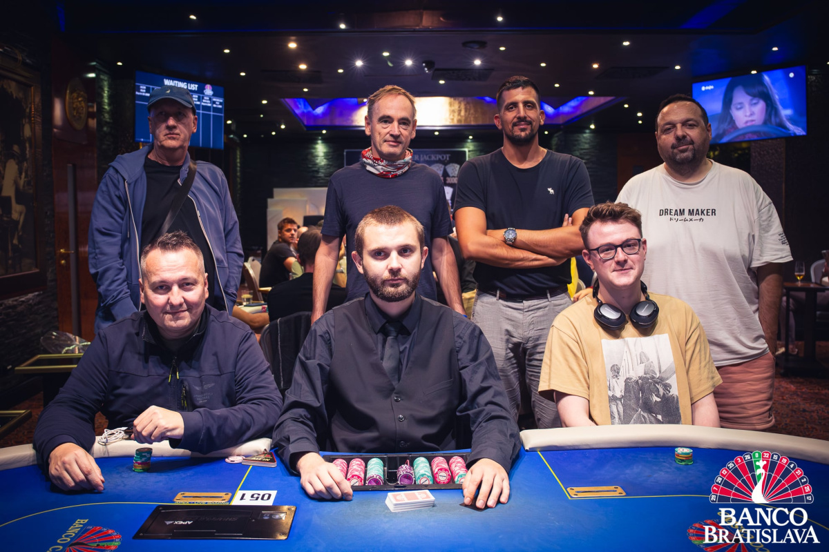 Ján Murček otváral na 3,500, Schaumuller 3-betoval na 15,000 a z Co sa pridal Kríž. Na flope 3s Kh 7h betoval Schaumuller 35,000, Kríž zahodil a Murček odpovedal raisom na 100,000. Schaumuller zahlásil okamžitý all in za asi 120,000 a Murček so setom sedmičiek o niečo menej dorovnal. Schaumuller však otočil Kx Kx a po turne 6x a rivri 2x si tak Schaumuller pripisuje masívny pot.